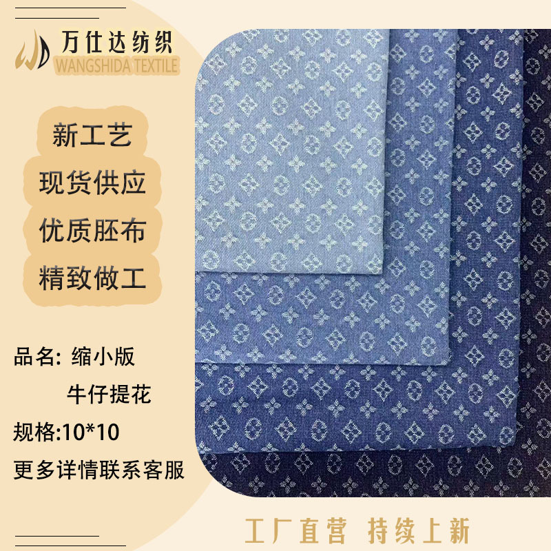 牛仔提花面料字母棋盘格几何牛仔裤裙装外套夹克童装拉布布娃娃衣