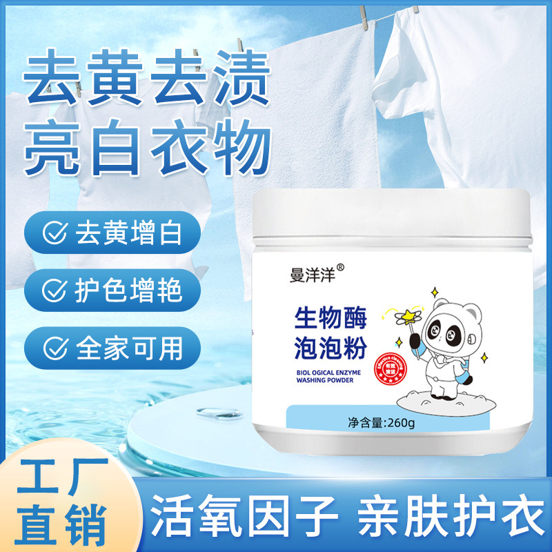 生物酵素の泡の粉は洗濯して汚れを取り除きます。