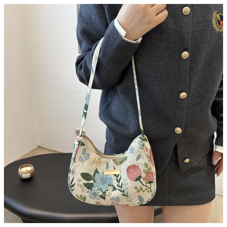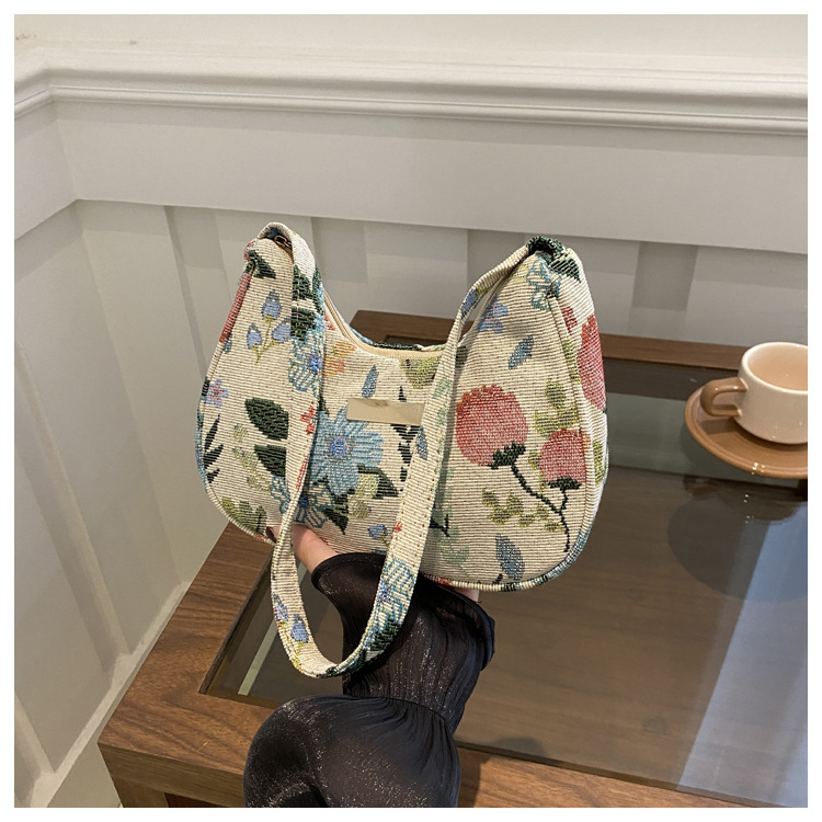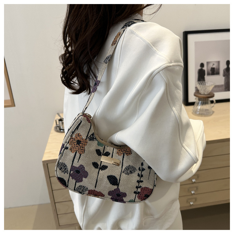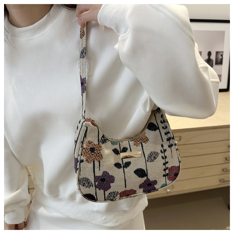 跨境碎花腋下包小众设计感时尚女包复古印花日常休闲百搭小包
