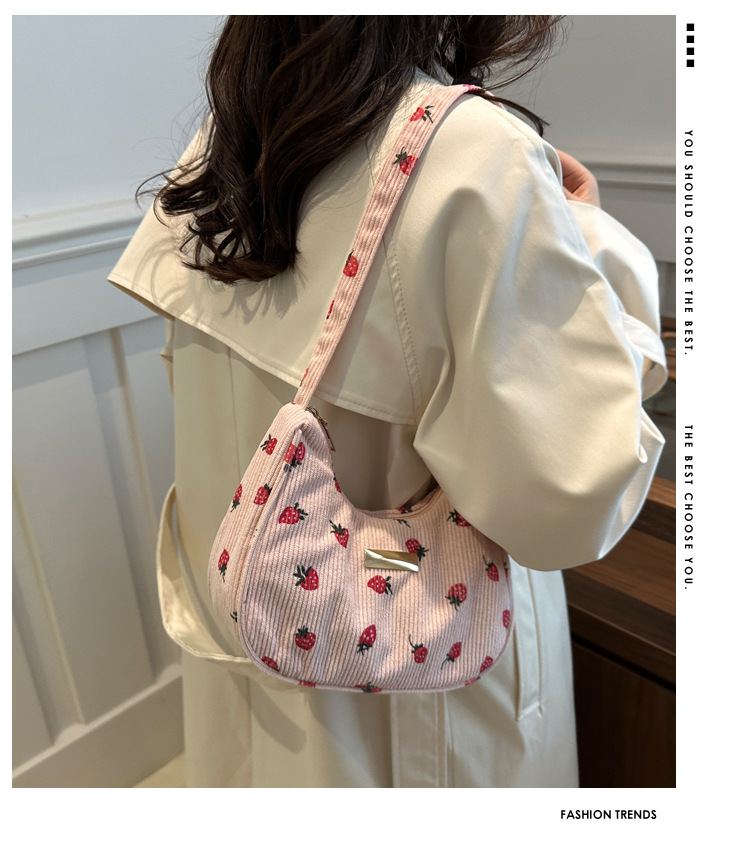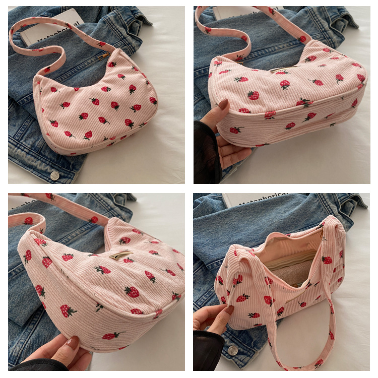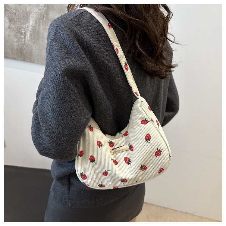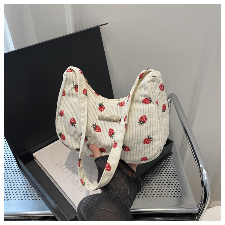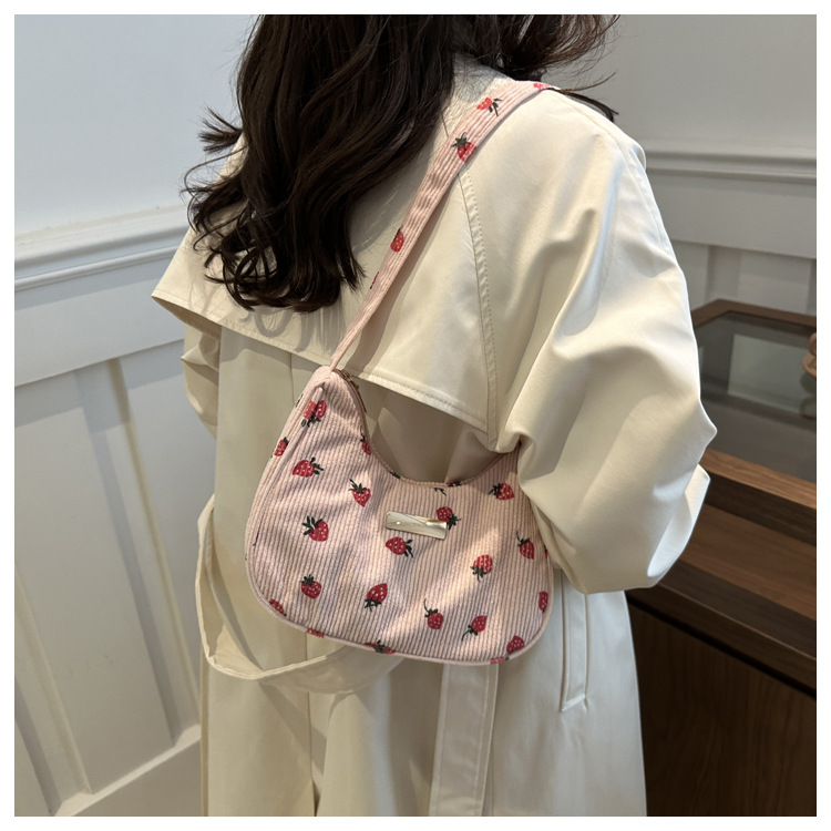 シンプルで大容量のカバン女性2025新型清新なイチゴのトートバッグファッション