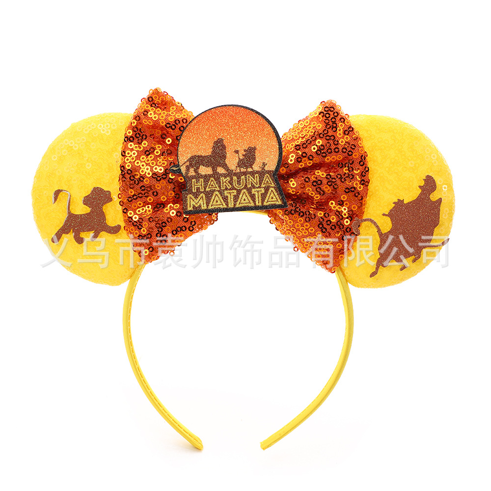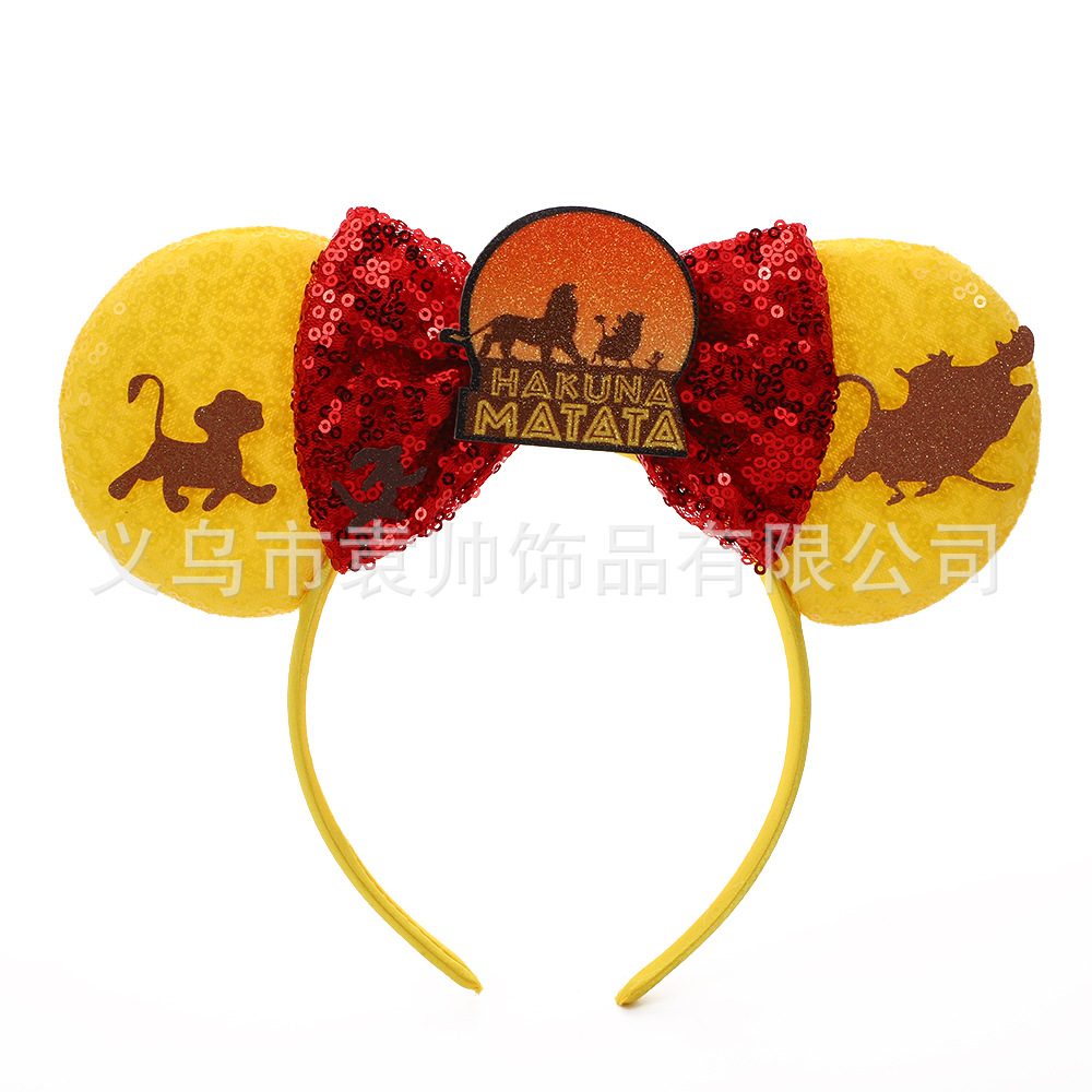 ライオン王のテーマのミッキーのカチューシャのシンバの役は装飾の髪飾りのスパンコールの蝶結びの装飾の頭飾りを演じます。
