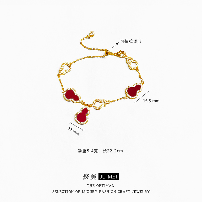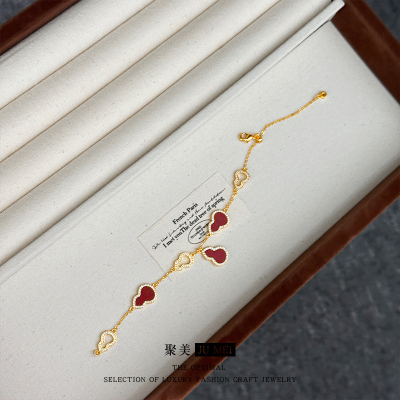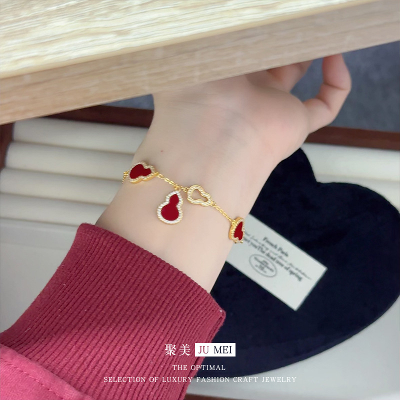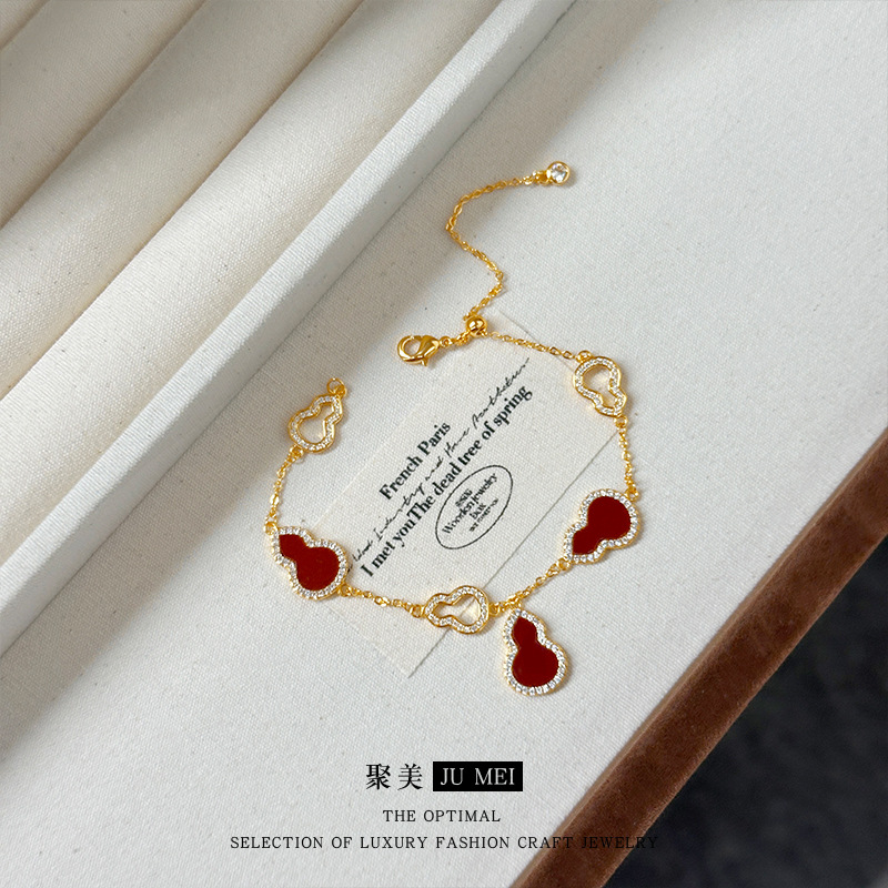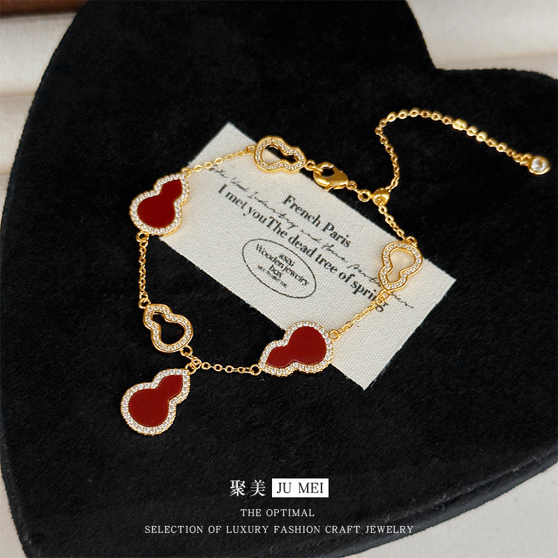 シャキンの赤い瑪瑙の福禄のヒョウタンのブレスレットの女性の本命年2025軽豪華なダイヤモンドのヒョウタンのデザイン感の装飾品