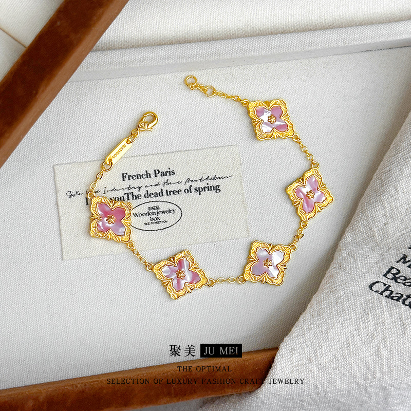 欧米の沙金粉貝母の幸運な草のブレスレットの女性insの大衆の設計の高級感のブレスレットの新型の貝殻の装飾品