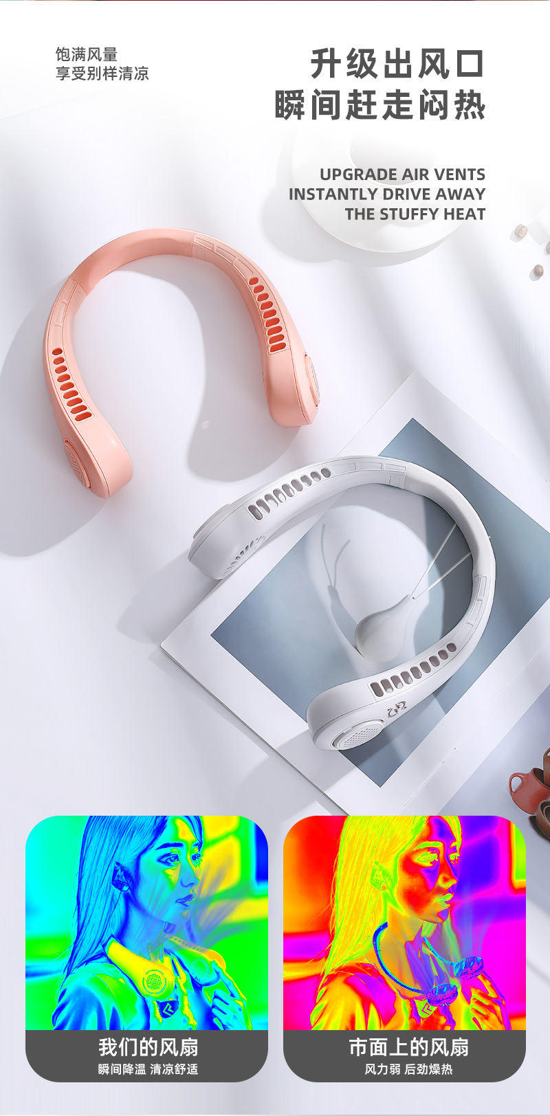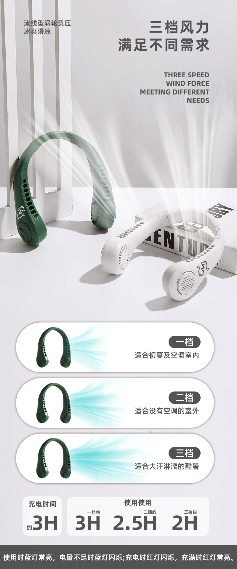 Fanshi Home Products ハンギングネックファン ポータブル 小型 怠惰なハンギングネック 耳と首 葉のない冷凍空調 静音