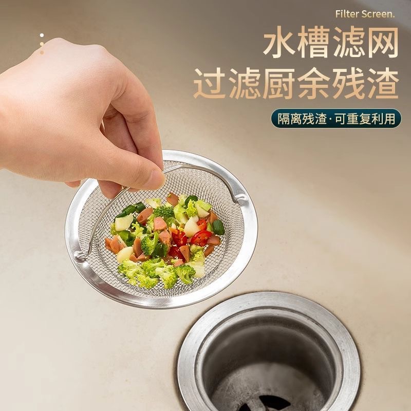 水たまりの台所の水槽の濾過網のステンレスの池は網を漏らして野菜のたらいの濾過網を洗います。