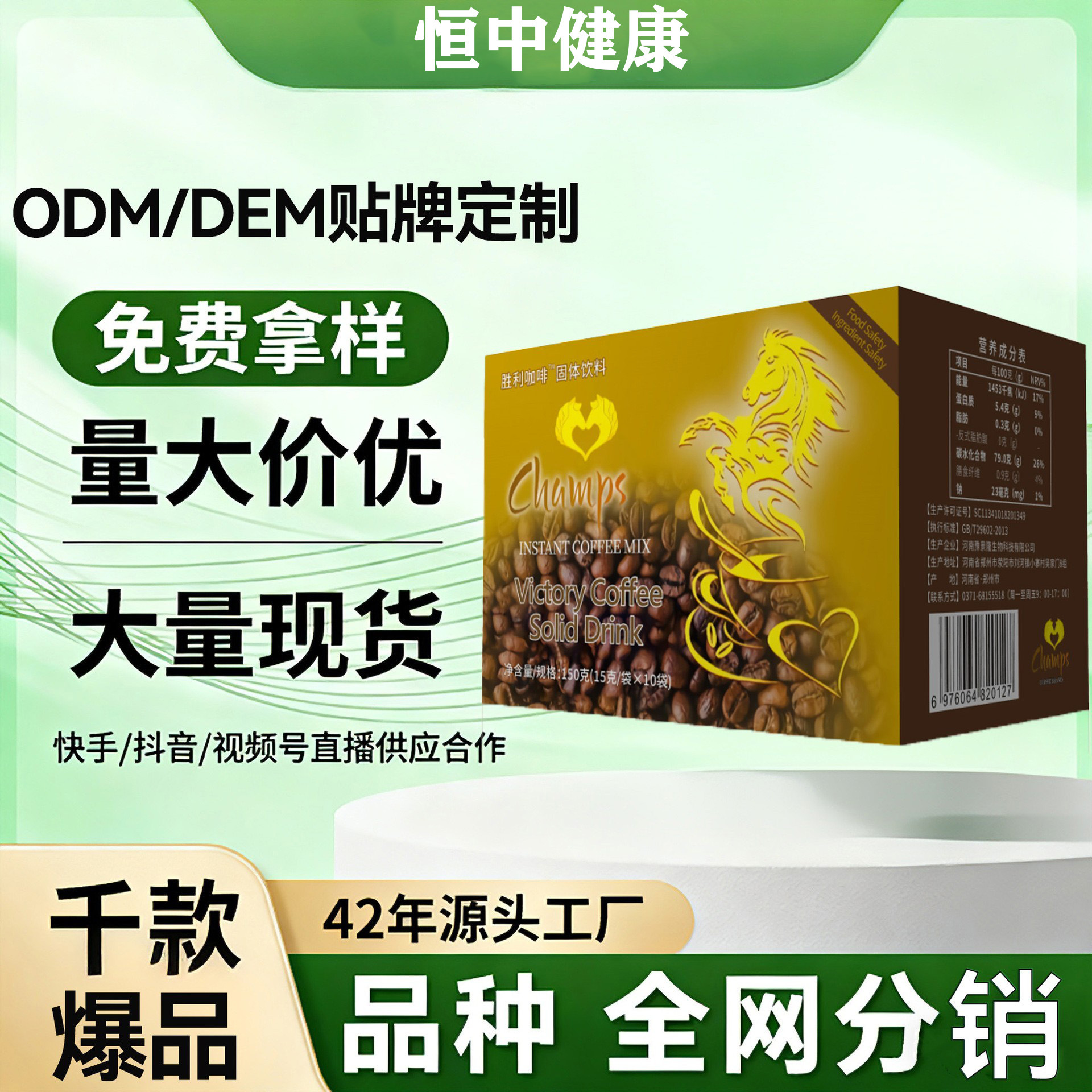 健五位エネルギーコーヒー三合一ブラックコーヒー男性コーヒーインスタントコーヒーOEMブランドカスタム加工