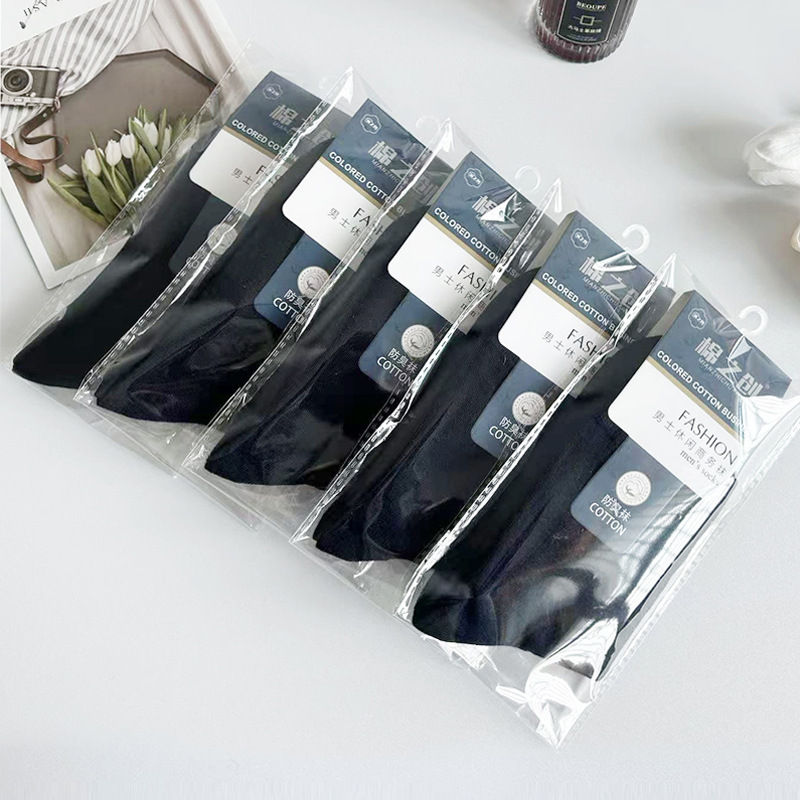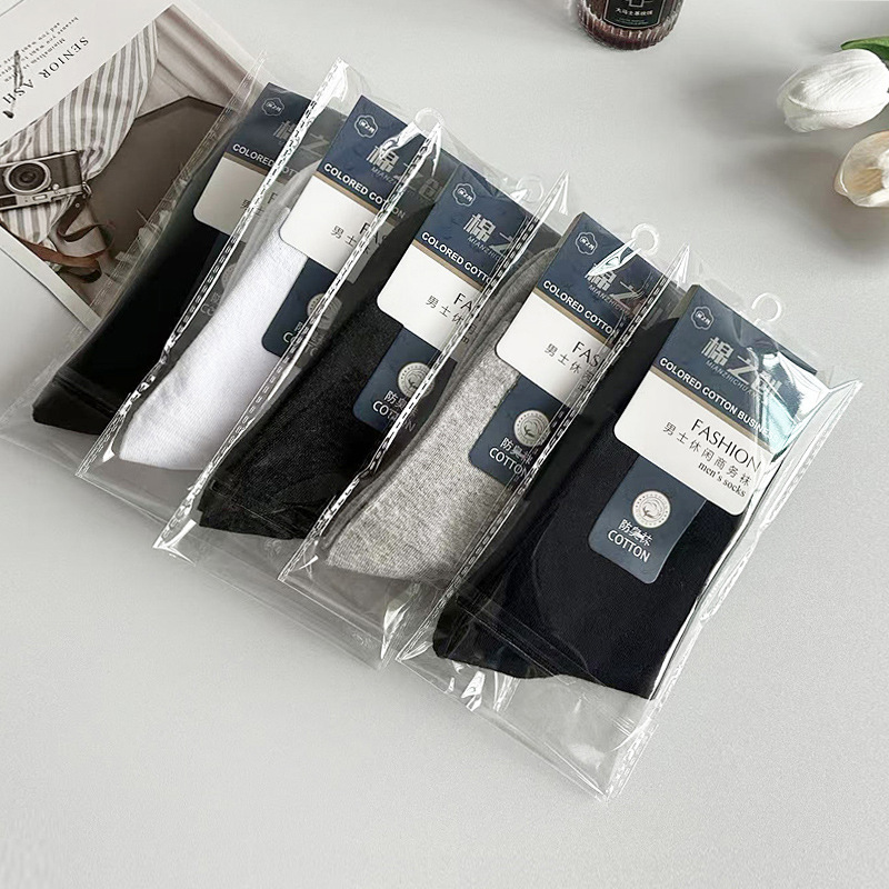 諸暨靴下卸売 黒白グレー無地ミドル丈靴下 秋用 防臭 メンズショートソックス 使い捨て靴下