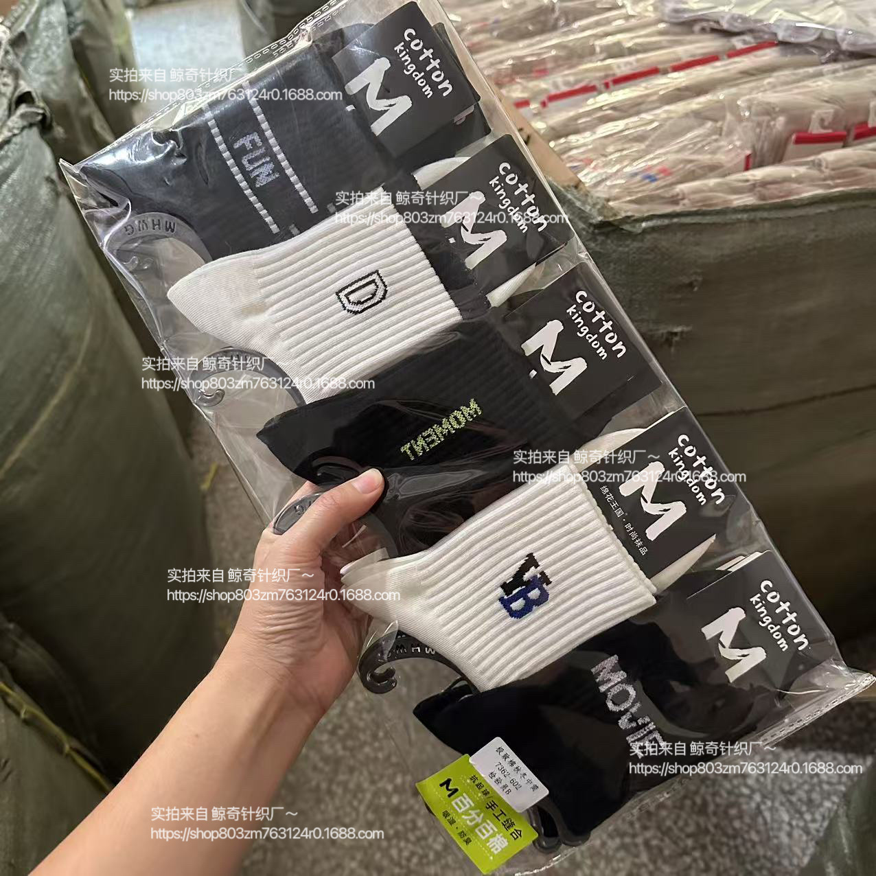 袜子男士春秋季中筒休闲袜防臭吸汗字母运动篮球袜男生黑白长筒袜