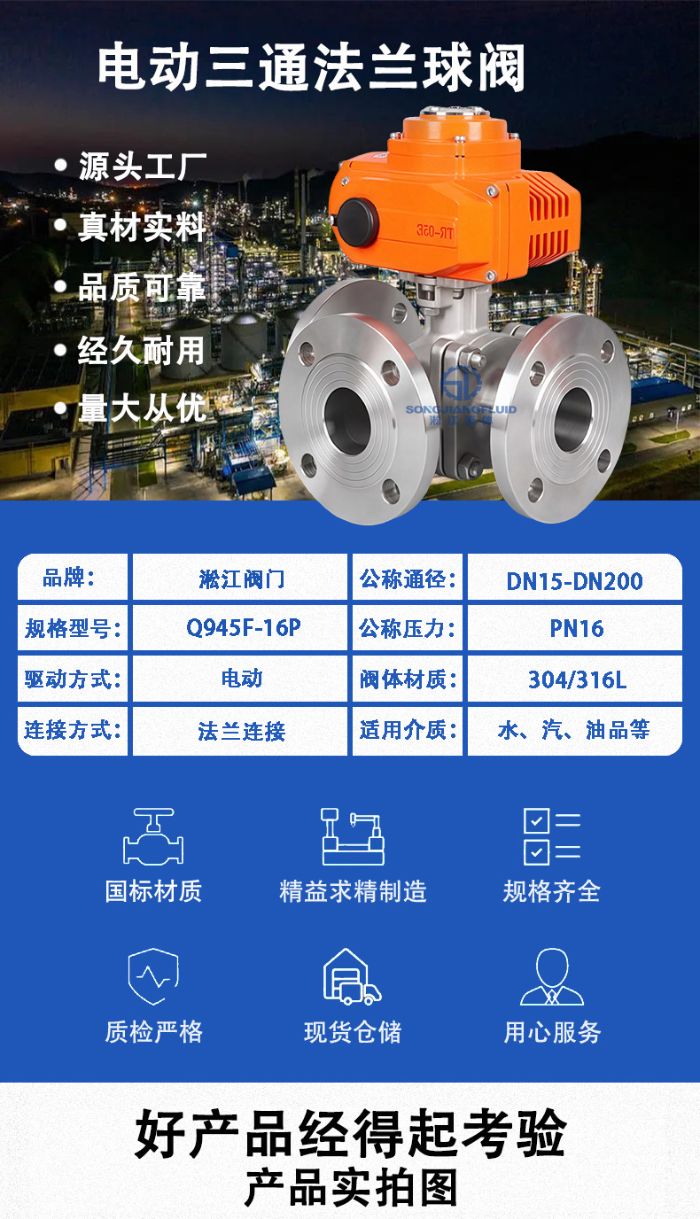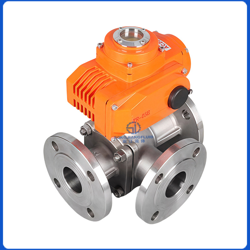 電動三方ボールバルブ Q945F-16P ステンレス鋼 304/316L 工業用パイプライン L/T タイプ分流逆転バルブ