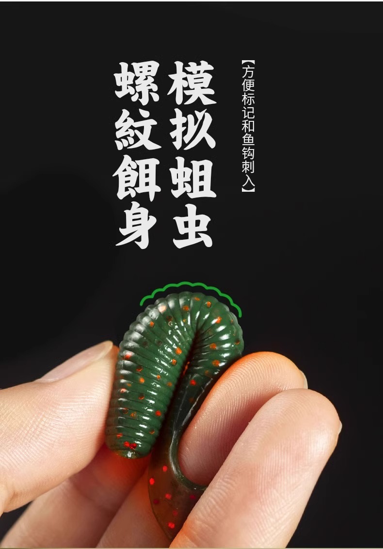 4、螺纹饵身,模拟蛆虫,方便标记和鱼钩刺入。