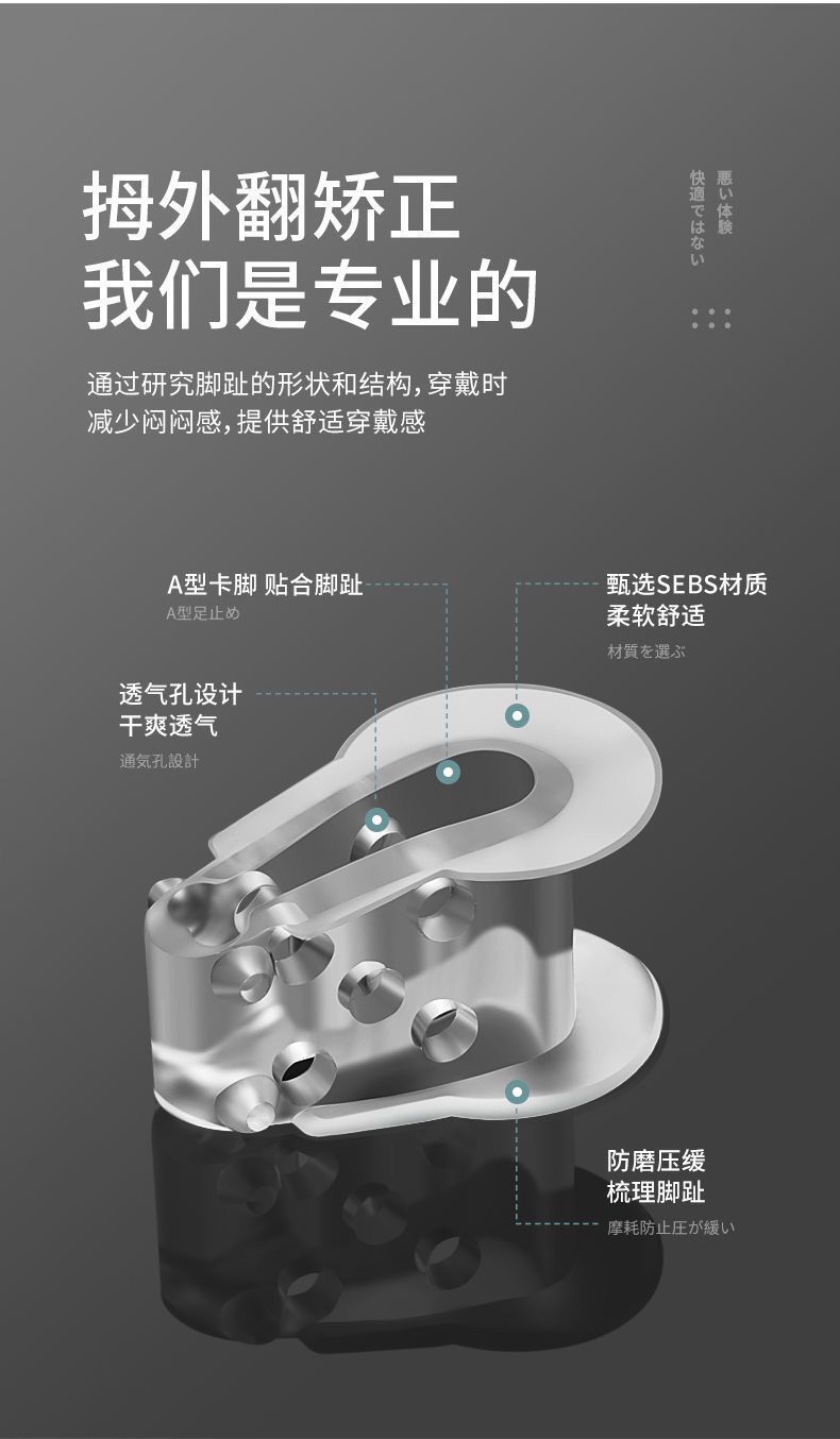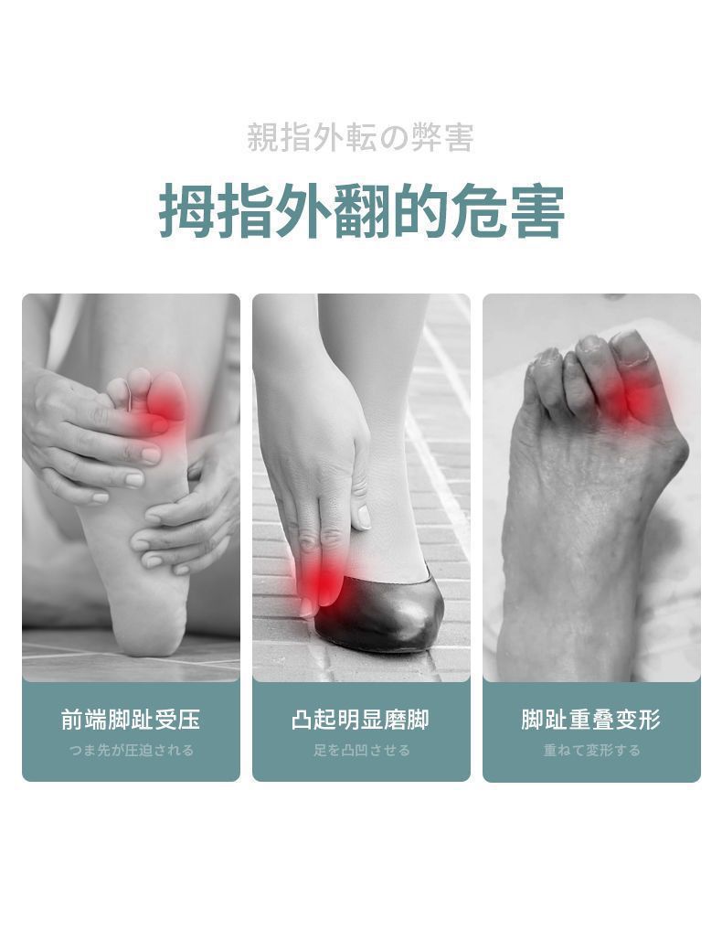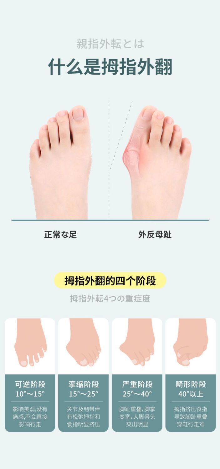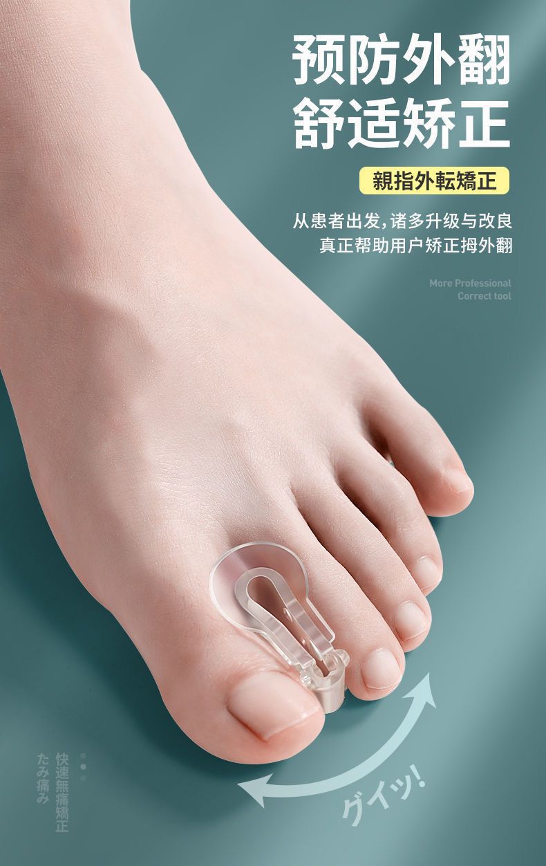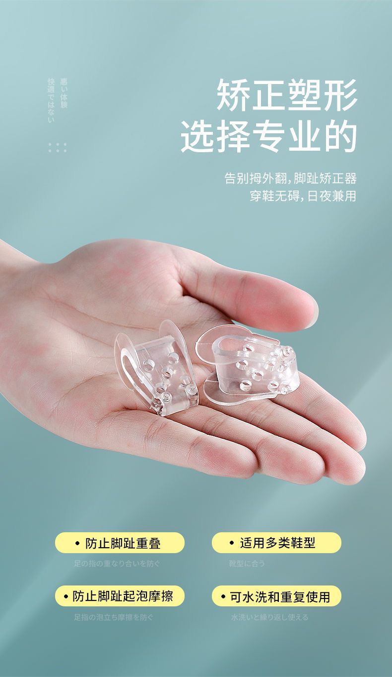親指の外反、足の骨の矯正、つま先の重なり、つま先の分離器、シンプルで痛みのない装着矯正装置