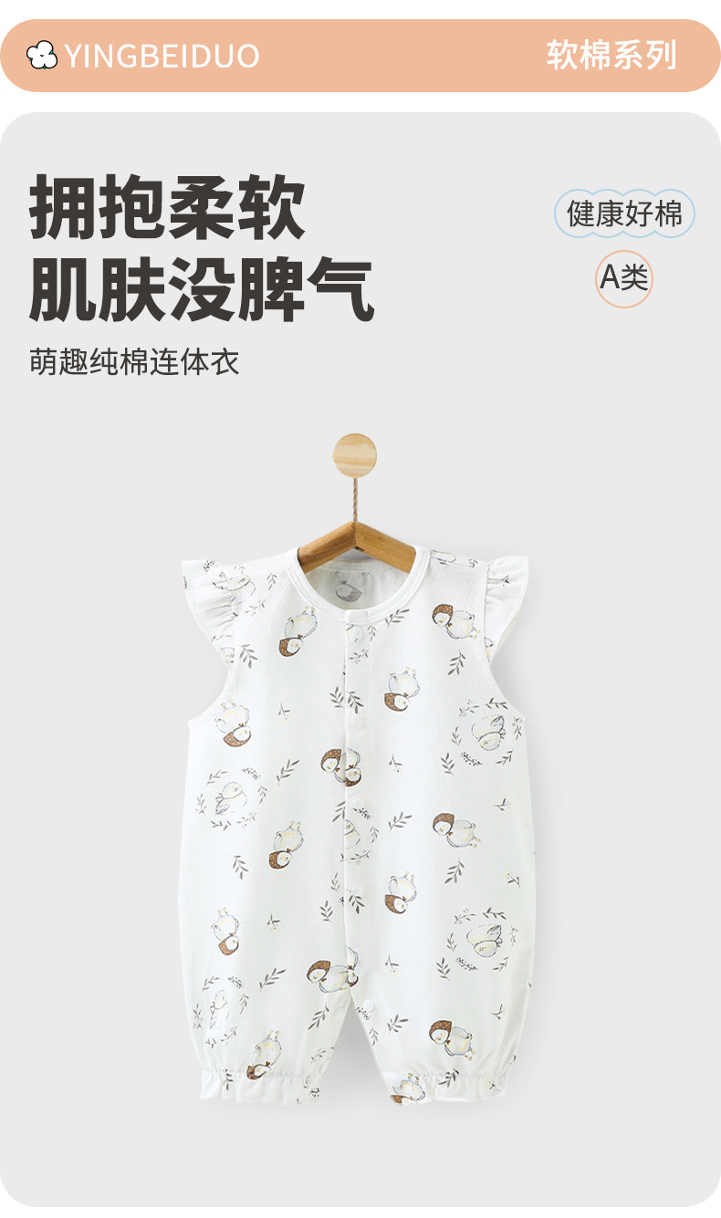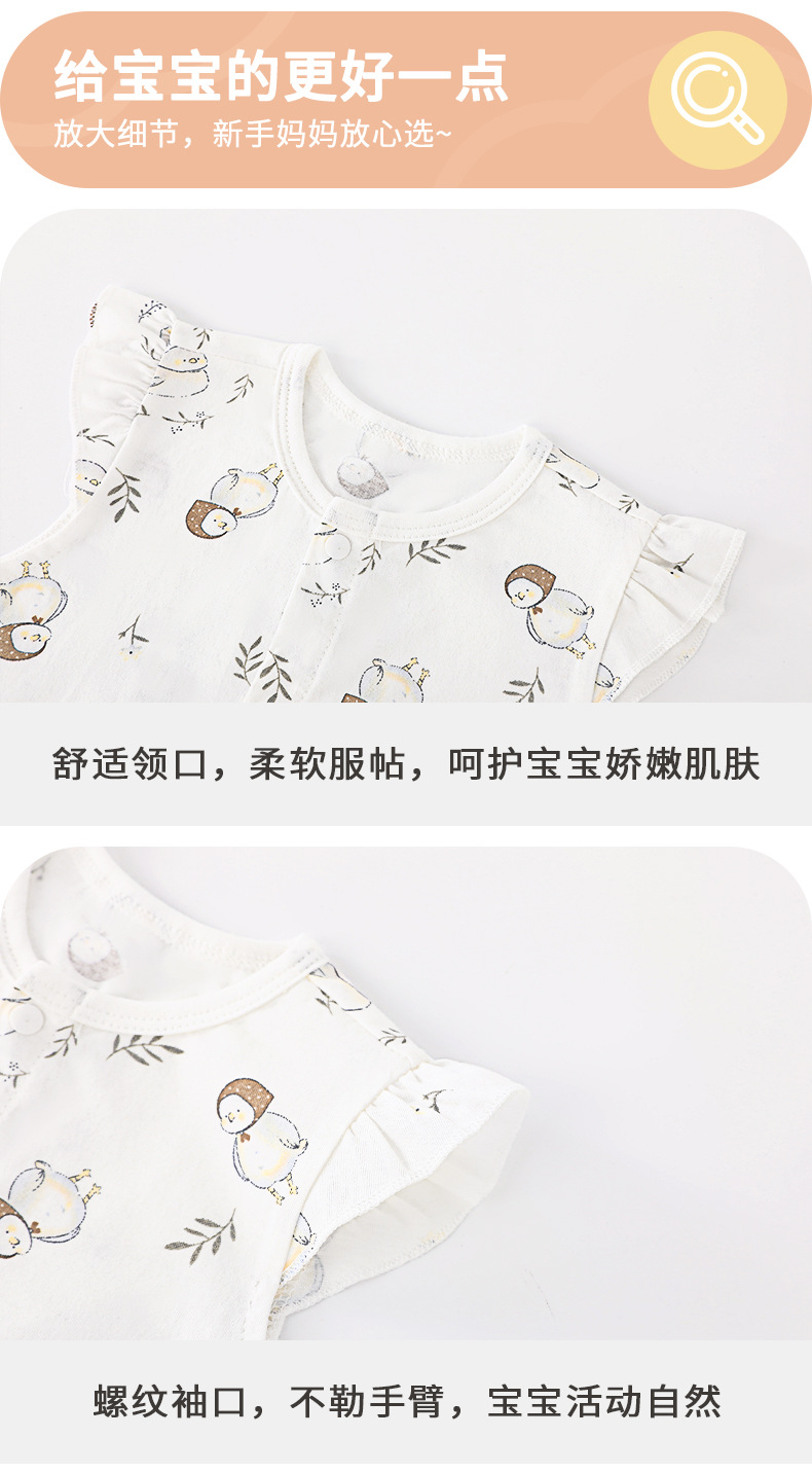 お尻を包む服の赤ちゃんの夏の赤ちゃんの三角の服の純綿の半袖の骨なしのワンピースの新生児の服の薄い金