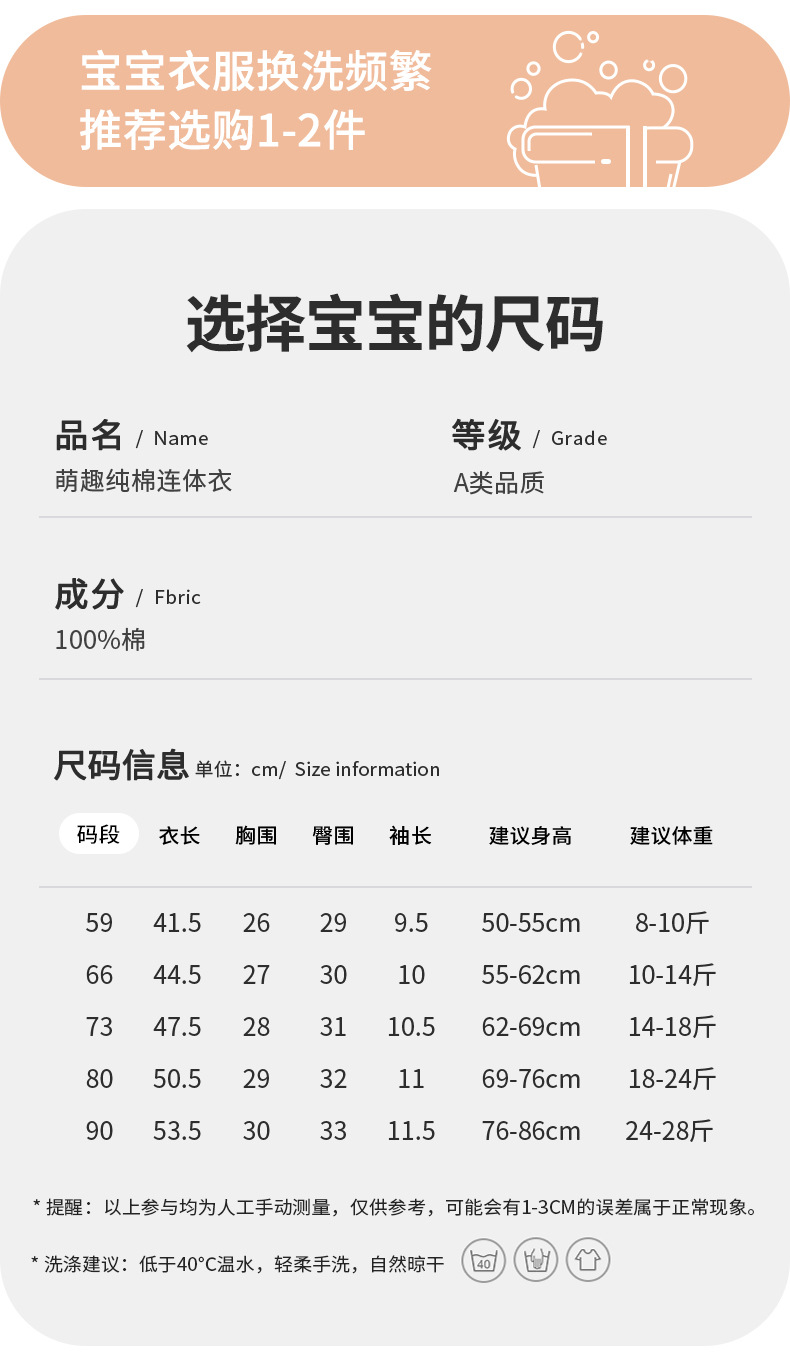 ベビージャンプスーツ、春と秋、カテゴリーA、純綿、男女兼用、新生児用、股開き可能、ロンパース、外出着