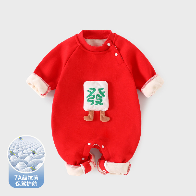 赤ちゃんの連体服秋冬の厚い保温中国風の赤ちゃんのお祝いの赤い満月の新年の服は服を登ります。