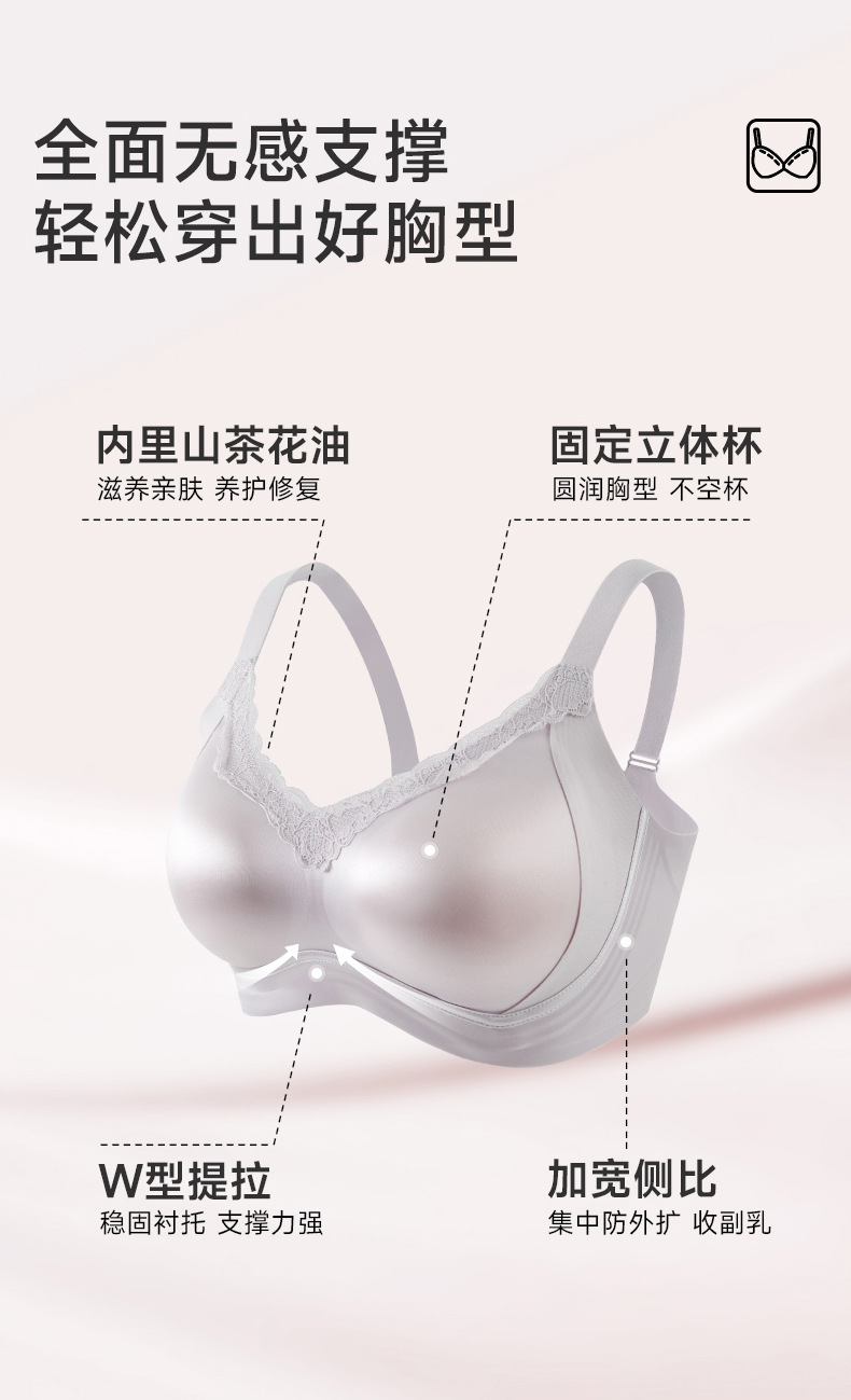 无痕软支撑粉底液缎面蕾丝内衣女聚拢上托无钢圈调整型透气文胸