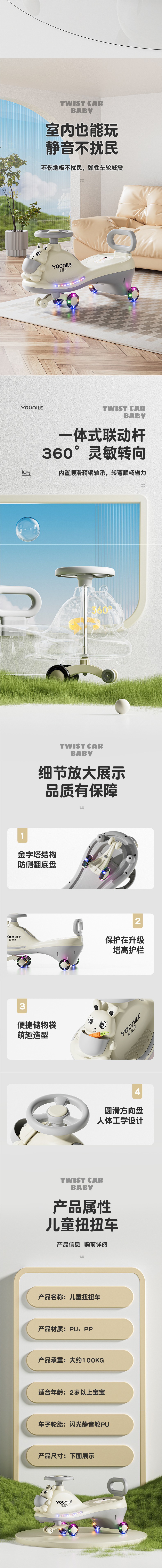 1~3歳向けの新しい子供用ツイストカー、プッシュロッドと座れるNiu Niuカー、横転防止、スライディング、サイレントヨーヨーカー、卸売