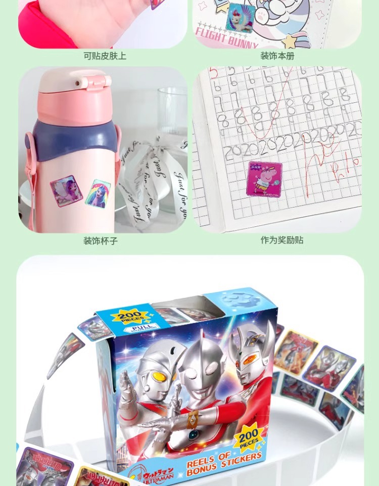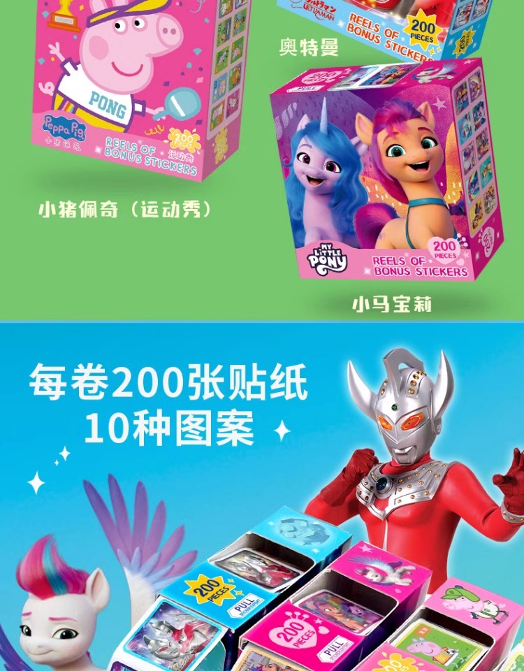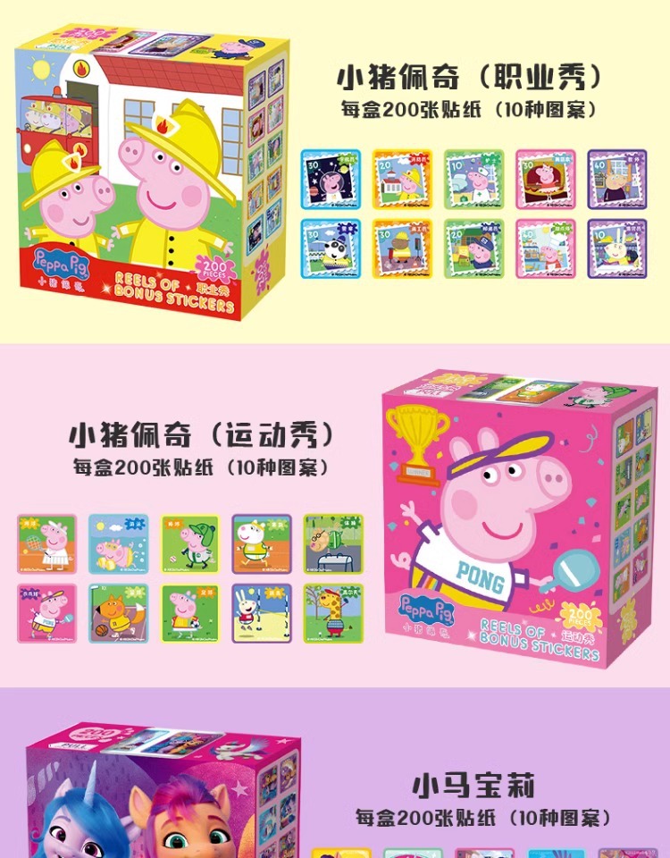 ペッパピッグ スポーツショー【ステッカー200枚・全10柄】,ペッパピッグ プロフェッショナルショー【ステッカー200枚・全10柄】,ウルトラマン【ステッカー200枚・全10柄】,ミッキー風(ステッカー200枚入り),アベンジャーズ (ステッカー 200 枚入りボックス) レーザー バージョン,ウルトラマン(ステッカー200枚箱) レーザーモデル,スパイダーマン (ステッカー 200 枚入りボックス) レーザー バージョン,アナと雪の女王1 (ステッカー200枚入りボックス) レーザーバージョン,アナと雪の女王 I (ステッカー 200 枚入りボックス) 鼓励の言葉とレーザー バージョン付き,アナと雪の女王 II (ステッカー 200 枚入りボックス) 鼓励の言葉とレーザー バージョン付き,アナと雪の女王 II (ステッカー 200 枚入りボックス) レーザー バージョン,ディズニープリンセス (ステッカー200枚入りボックス) レーザーバージョン,スーパーウイングス (ステッカー 200 枚入りボックス) レーザー バージョン,海底コラム1(ステッカー200枚箱) レーザーバージョン,海底柱2(ステッカー200枚箱) レーザーバージョン,マイリトルポニー (ステッカー 200 枚入りボックス) レーザー バージョン
