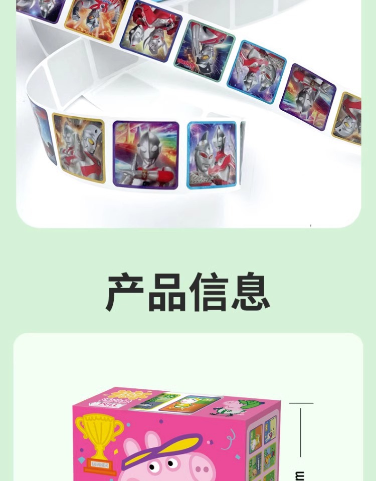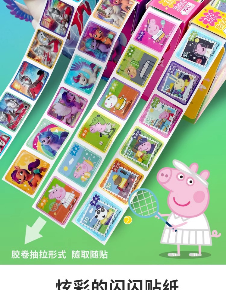 ウルトラマンキラキラ漫画ロールステッカーペーパーポニーポーリー子豚子供ステッカー幼稚園奨励ステッカー