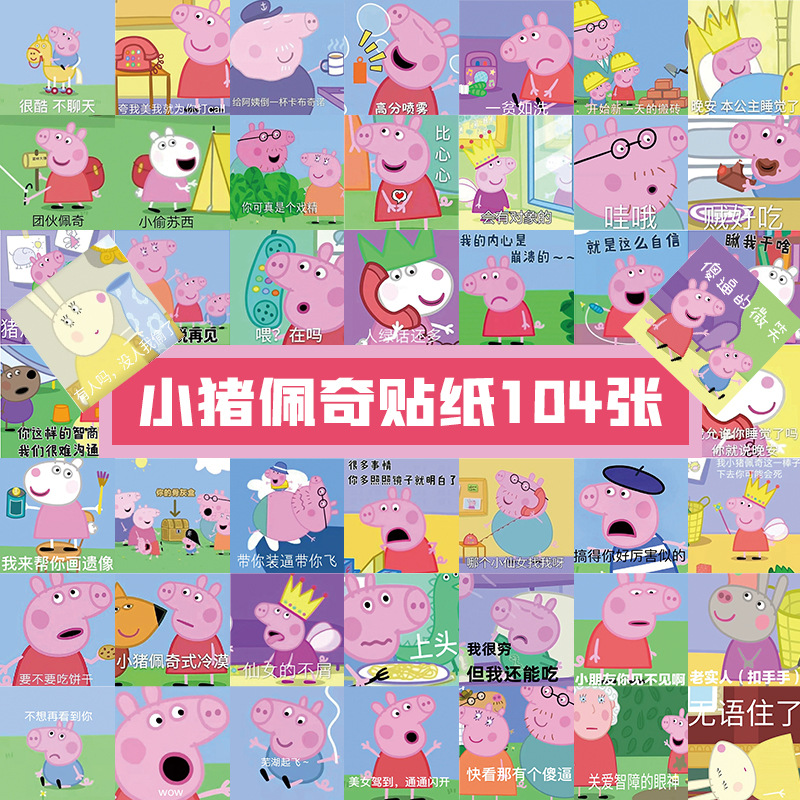 小猪佩奇贴纸104张含贴纸盒创意搞笑防水贴画高清印刷图案批发