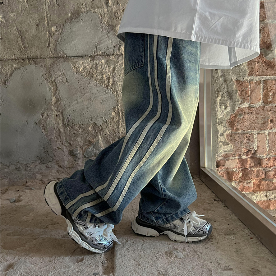 小童25春モデル子供用デニムパンツ パリのトレンドブランドが施したストライプ入りストレートボーイズデニムパンツ トレンドブランド子供用パンツ