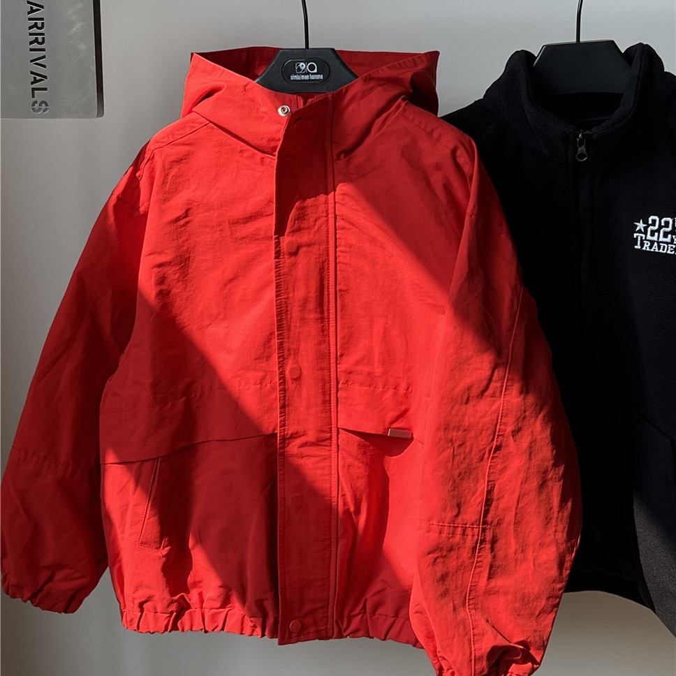 2025秋冬新款儿童红色冲锋衣韩版男童潮款连帽外套