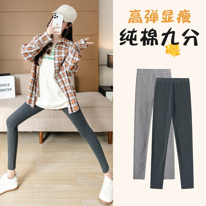灰色の純綿の9分の底のズボンの女性は春と秋の薄いタイプの高腰の秋のズボンの弾力のタイツを着て代行します。