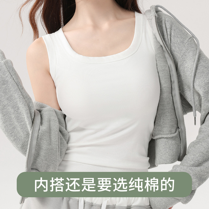 純綿のキャミソールの女性の春の夏の薄いタイプの中に胸のクッションが付いています。