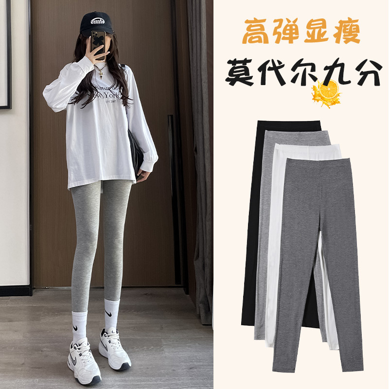 モーダルブラック 9 点レギンス女性のアウターウェア春と秋の薄いタイトなおなかコントロールロングジョンヨガストレッチパンツ