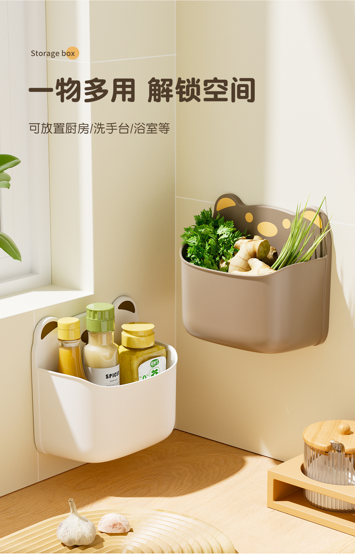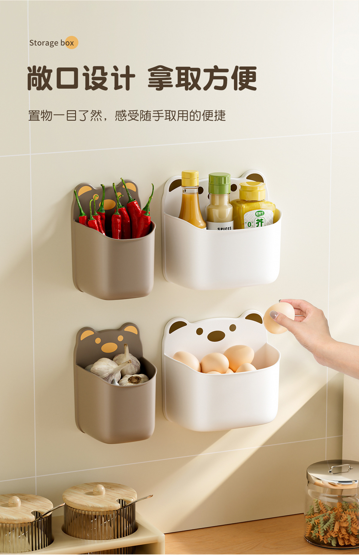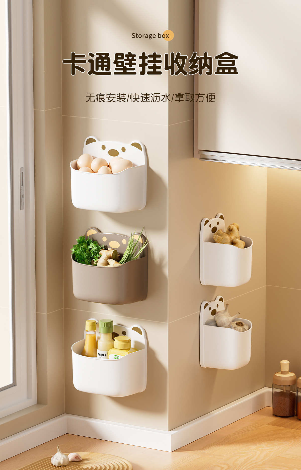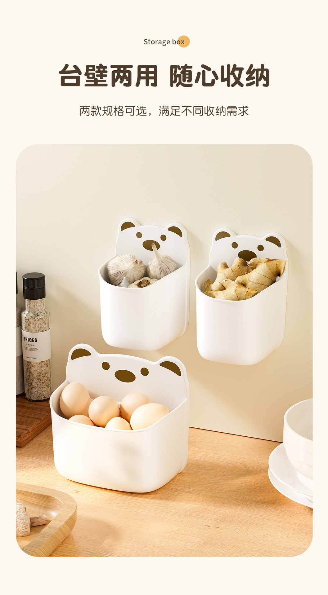 壁挂式卡通熊可爱收纳盒厨房葱姜蒜免打孔置物墙上收纳冰箱侧挂蓝
