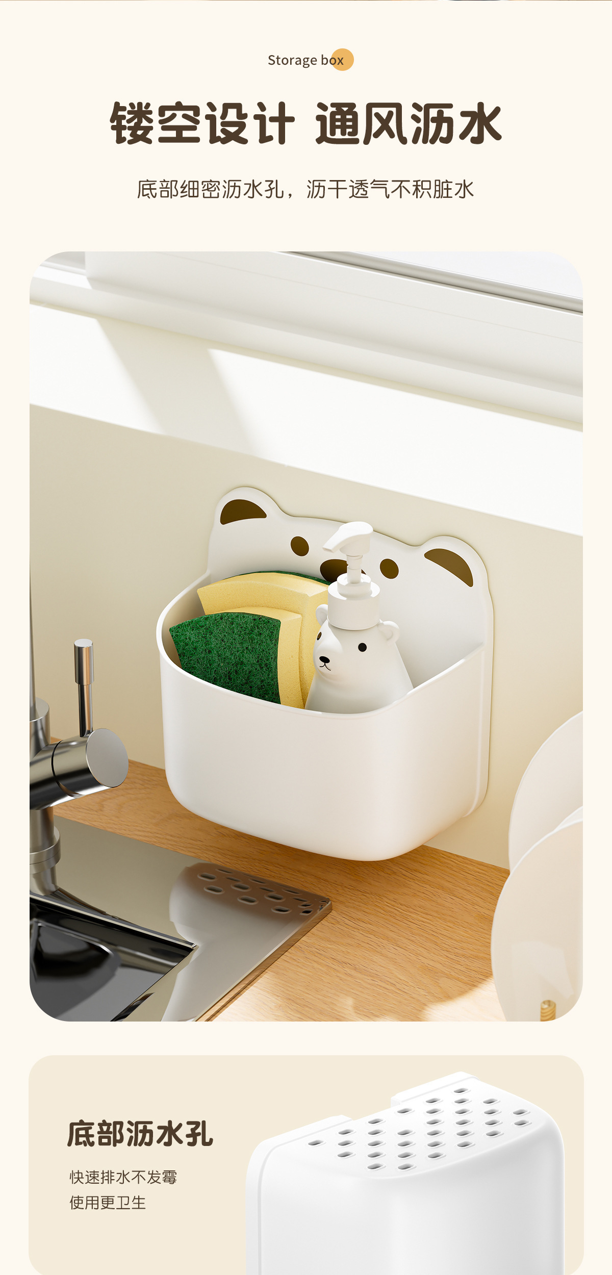 创意卡通熊收纳篮厨房葱姜蒜收纳筐免打孔卫生间杂物收纳置物架