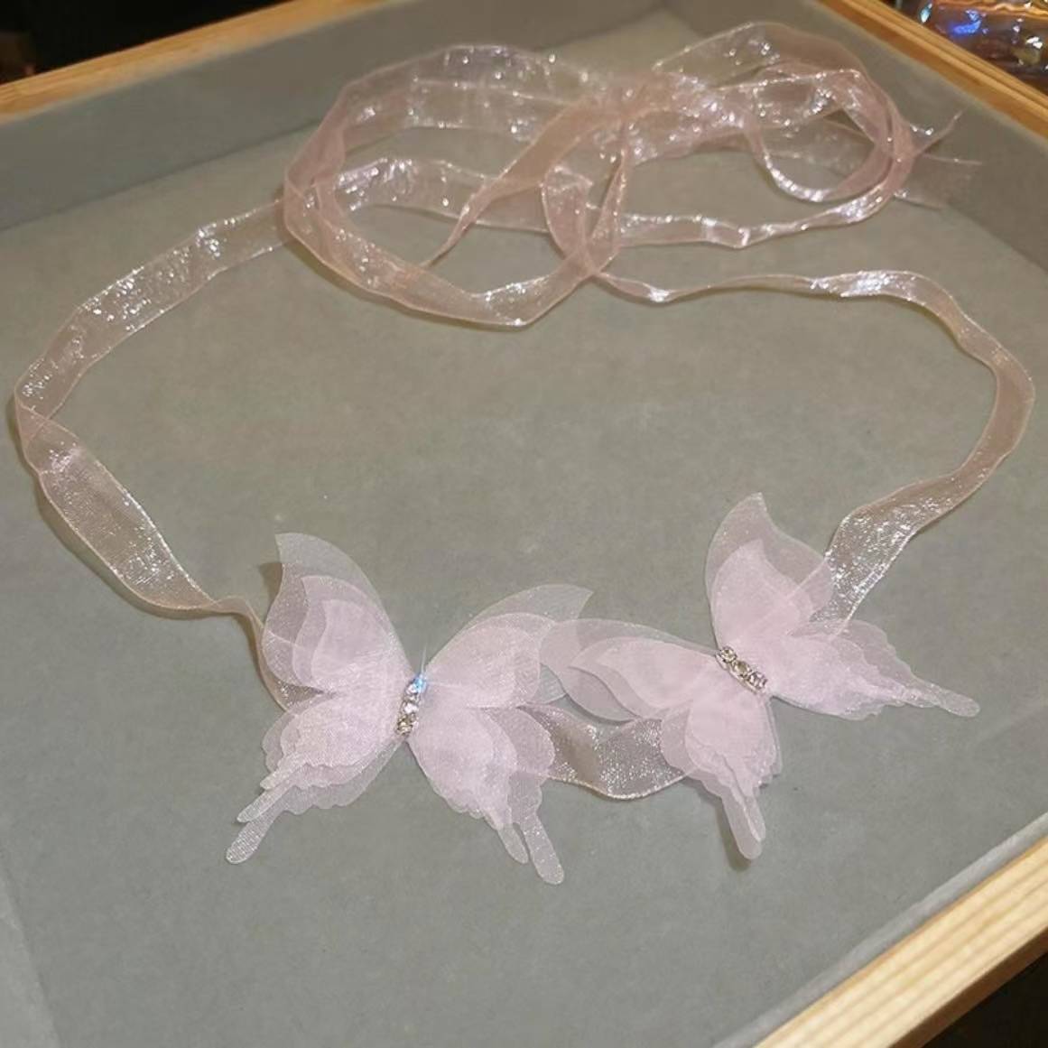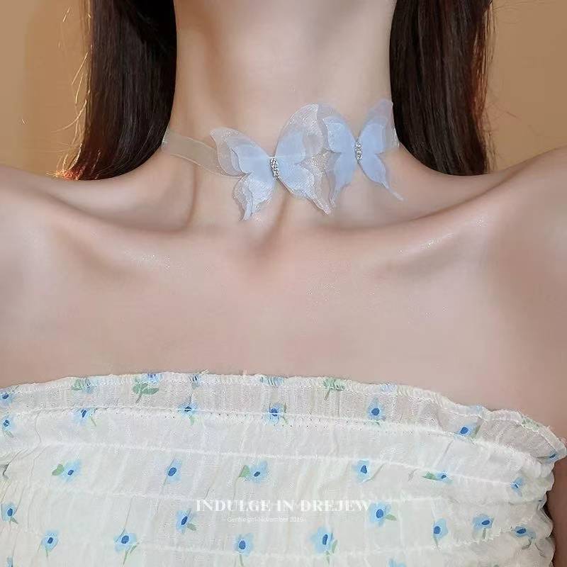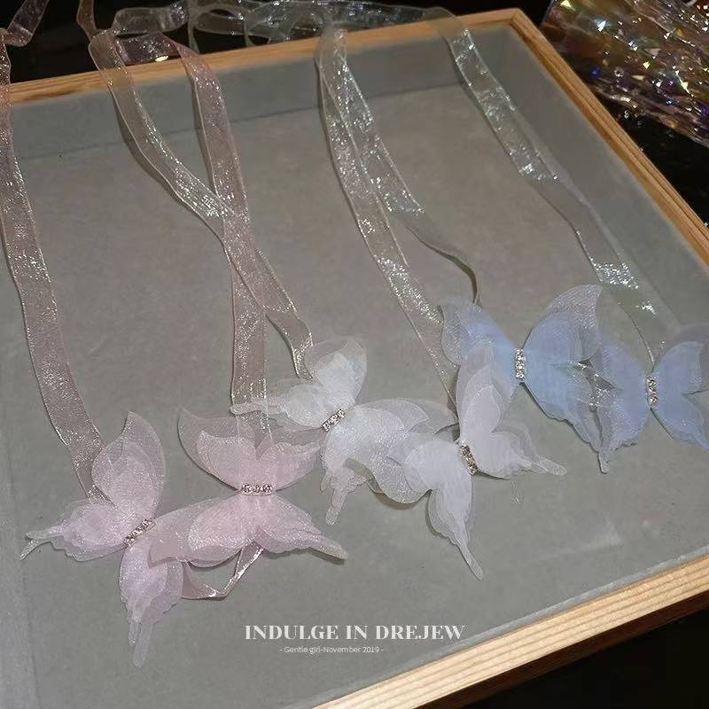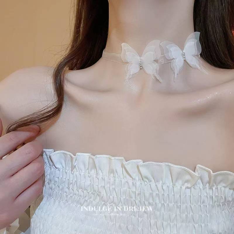 フランスの蝶の網の紗のダイヤモンドのネックレスの超仙の休暇の雰囲気感のchokerの高い顔の値のファッションの鎖の鎖は飾ります。