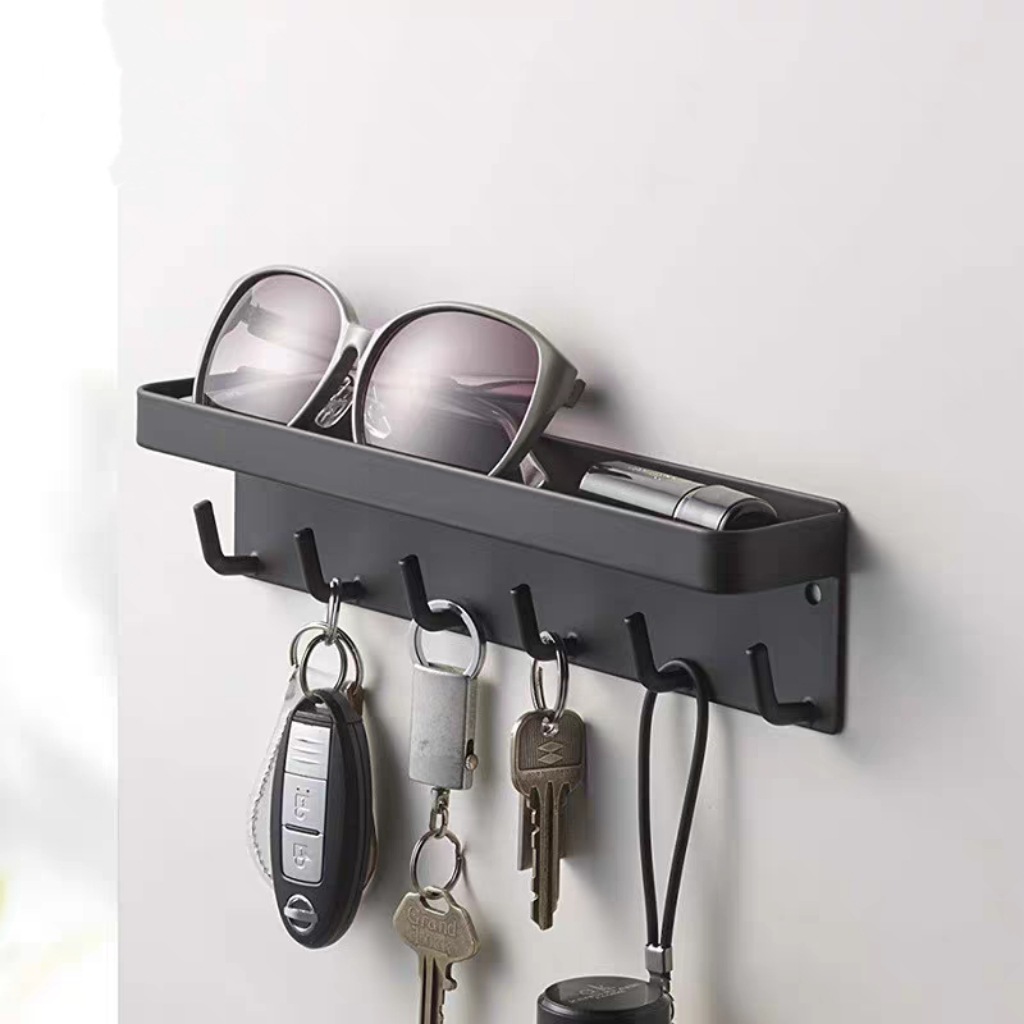 二層式磁気フック収納ラック 玄関収納 ドア後ろに設置可能 穴あけ不要 帽子、傘、鍵掛け収納