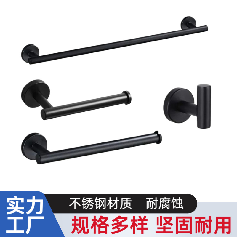 跨境304不锈钢毛巾架套装 卫生间毛巾杆纸巾架衣帽钩浴室收纳套