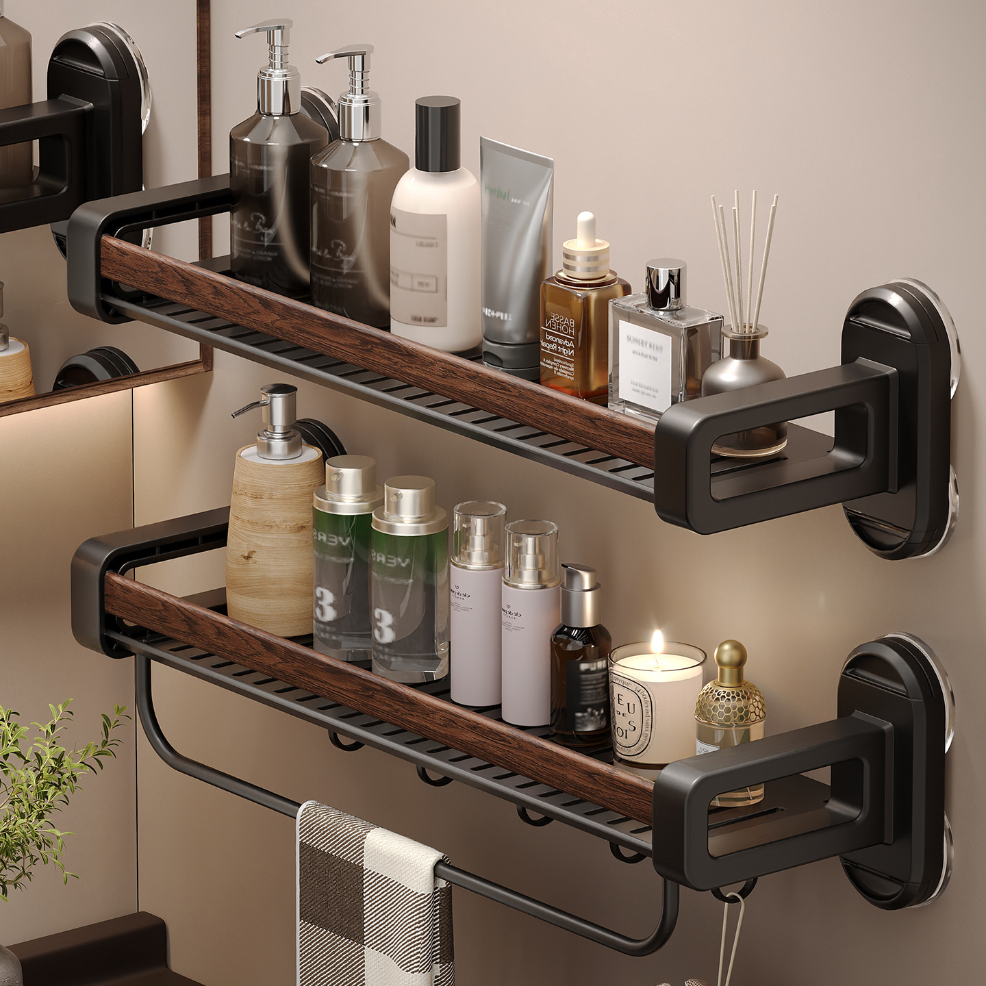 胡桃木新款双吸盘厨房置物架多功能免打孔壁挂墙上调料品收纳架子