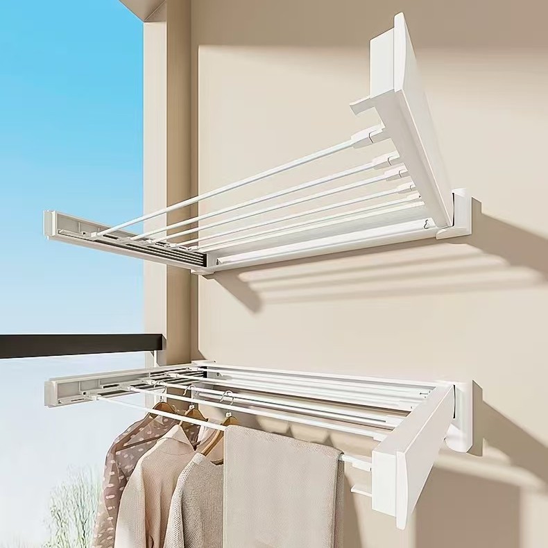 クロスボーダー4.2型 隠蔽式収縮壁掛け物干しロープ 穴あけ不要 ホテル物干しラック バルコニー収納 ステンレスワイヤー