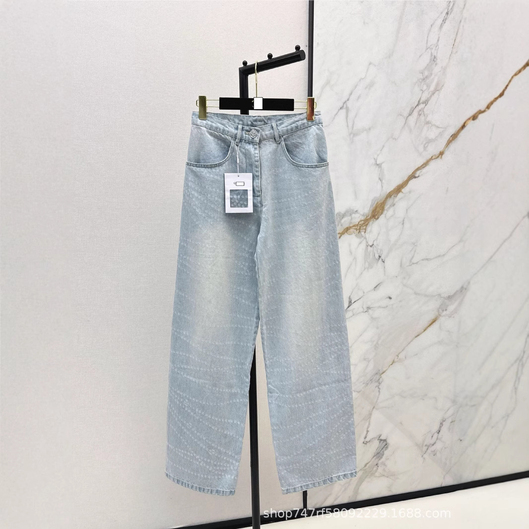 深圳南油25春夏高端女装复古洗水高级珍珠链条阔腿牛仔裤