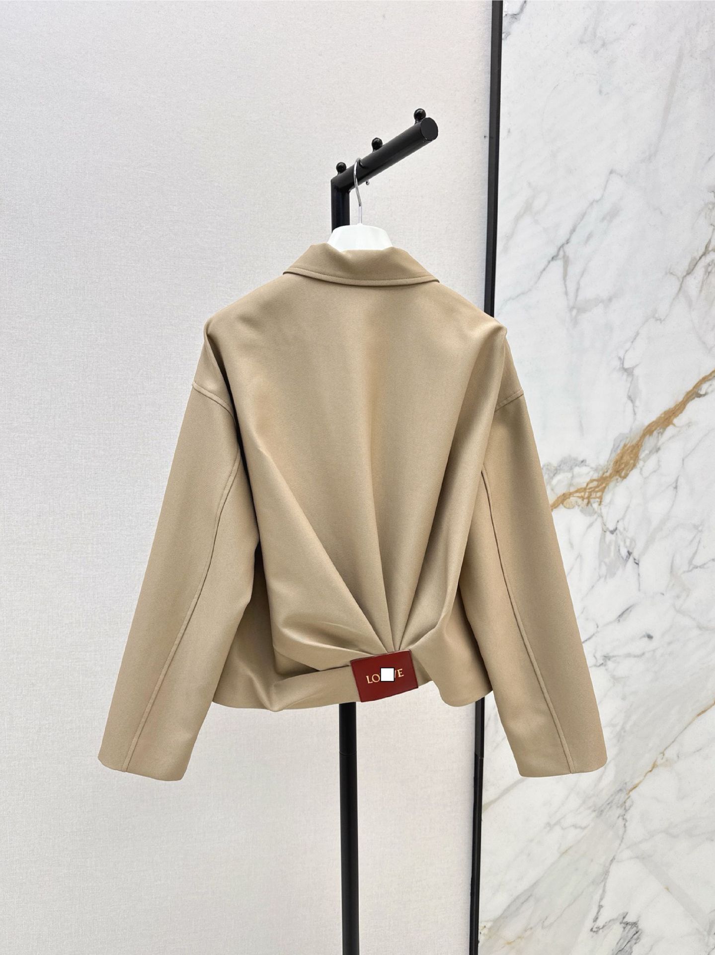 深圳南油2025春夏气质工装褶皱logo皮革装饰翻领夹克外套