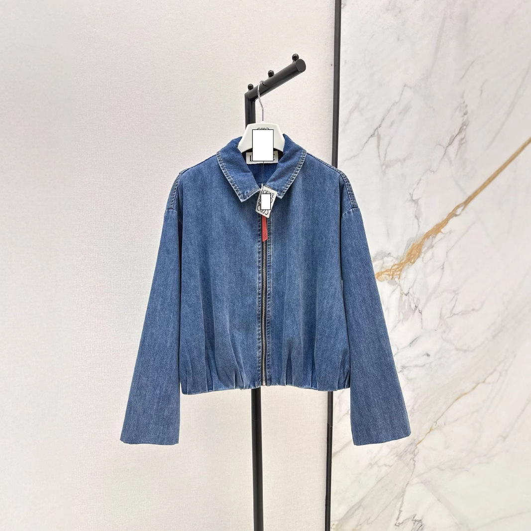 深圳南油2025春夏气质工装褶皱logo皮革装饰翻领牛仔夹克外套