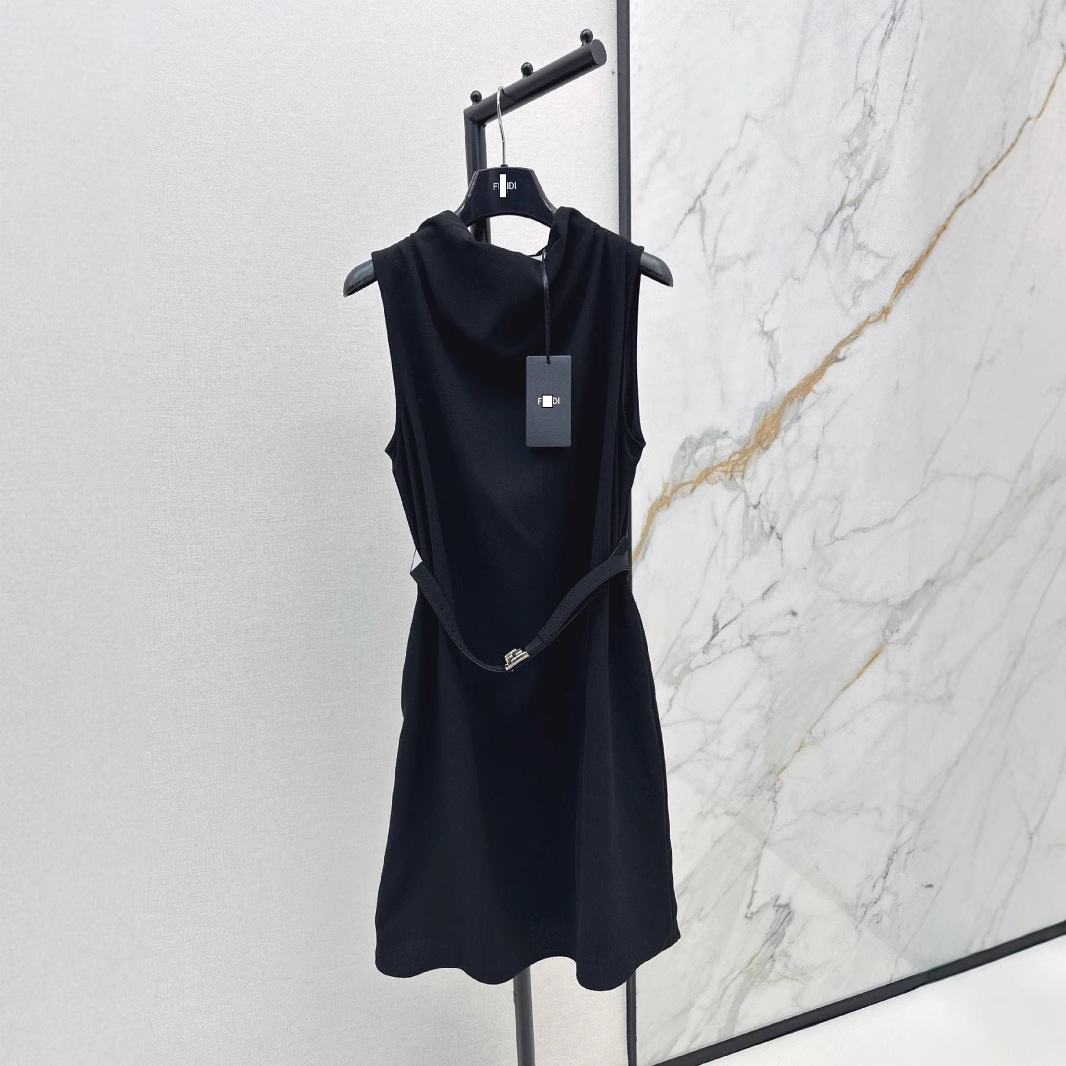 深圳南油2025春夏名媛气质FD简约高级飘带装饰无袖连衣裙