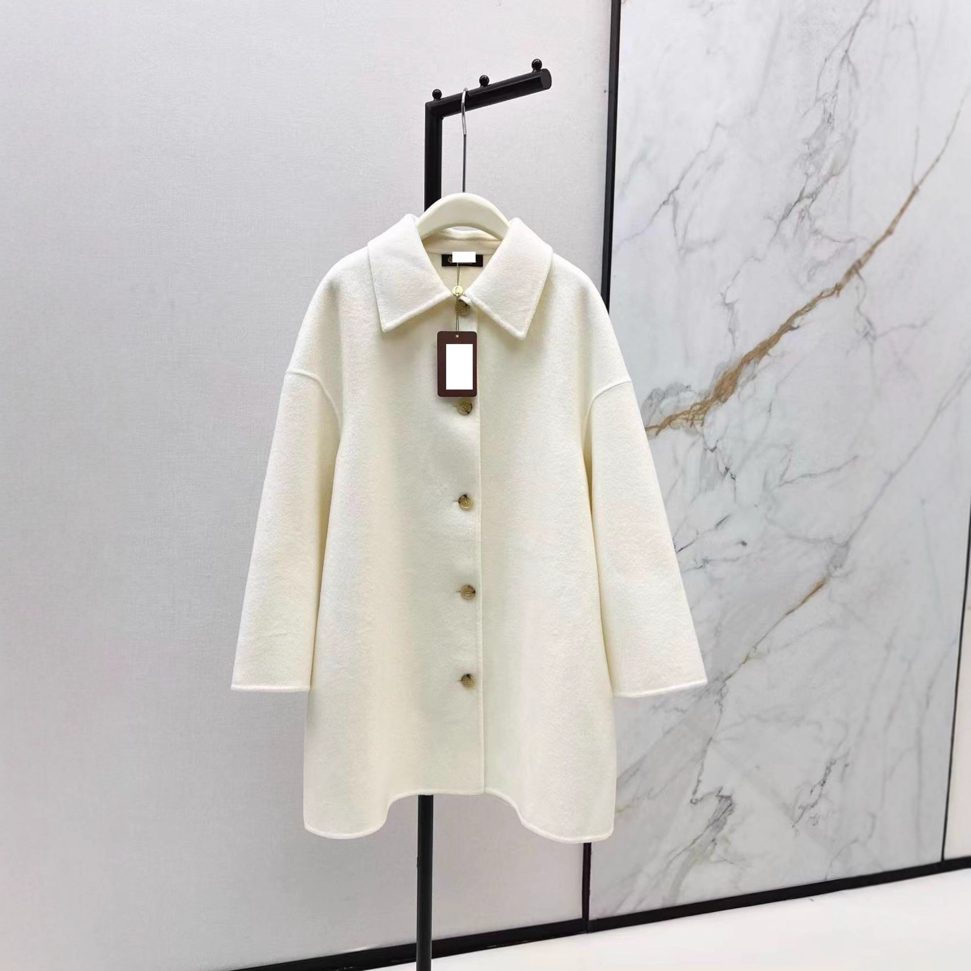 深圳南油25秋冬高端女装气质翻领单排扣手工羊绒长款大衣外套
