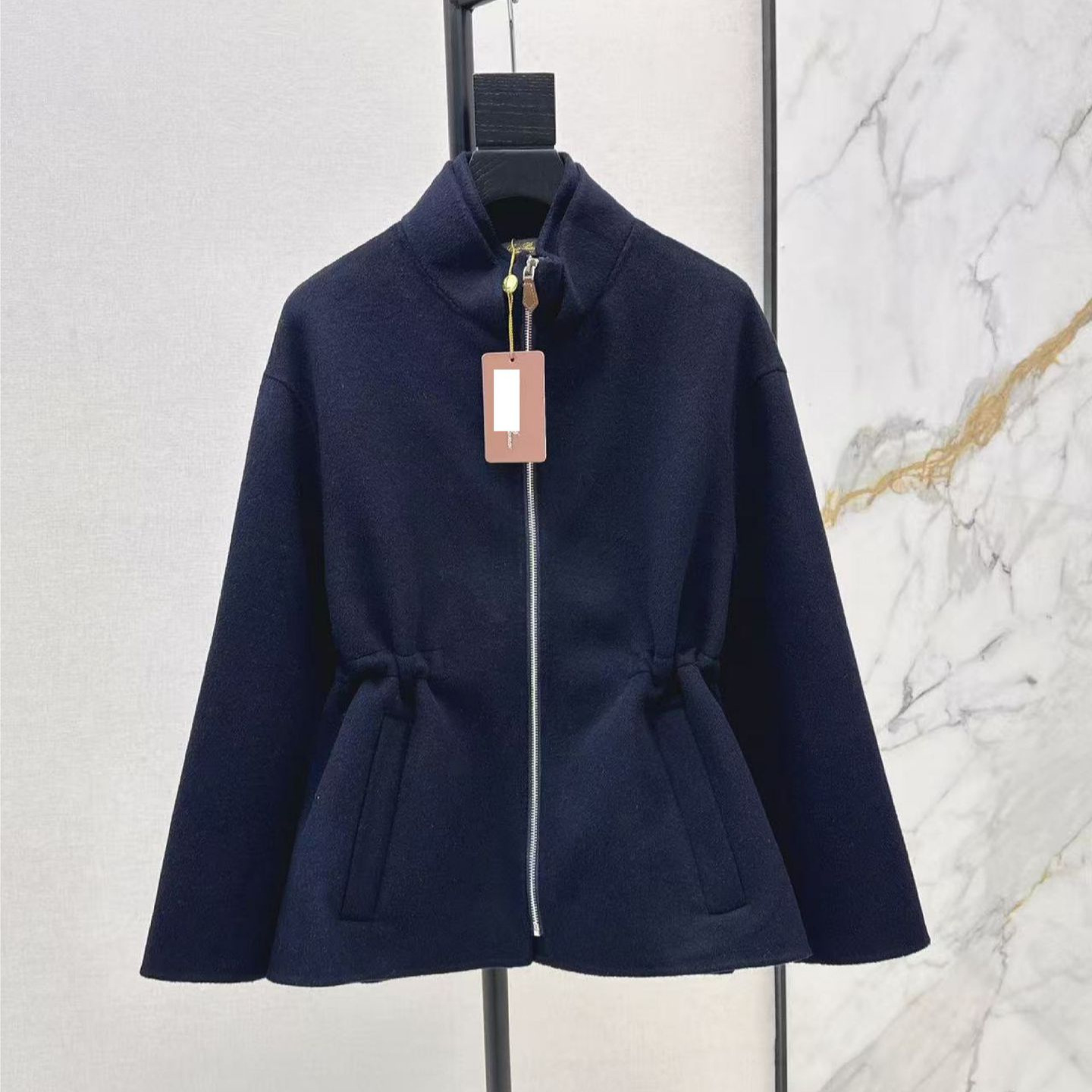 深圳南油25秋冬高端女装优雅干练海军蓝立领羊毛羊绒夹克外套