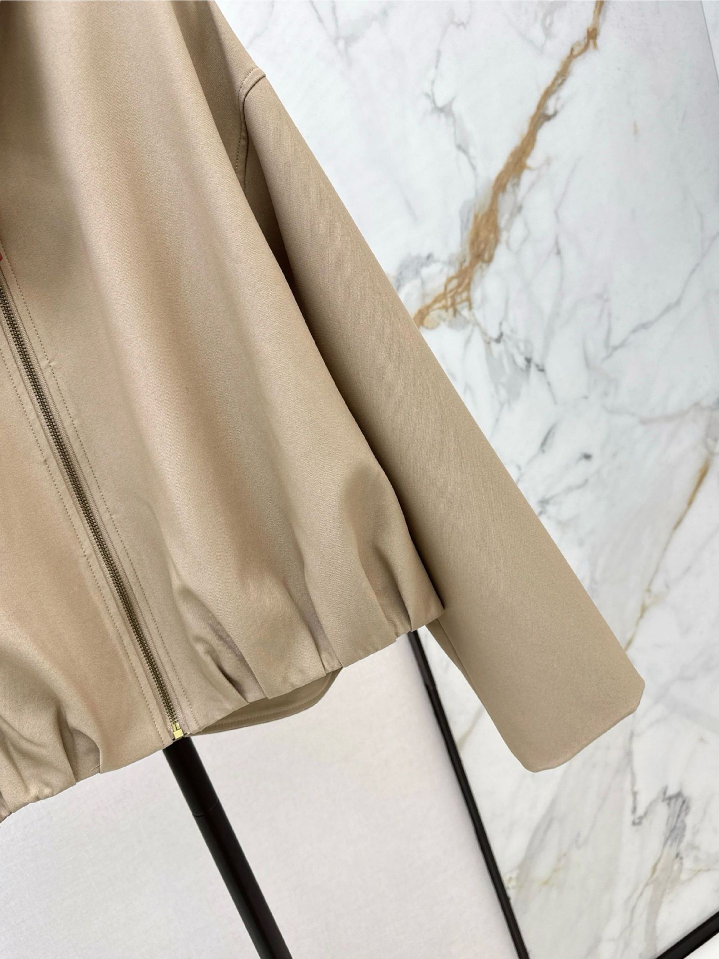 早春新款字母微标宽松短款褶皱设计翻领拉链夹克休闲百搭外套女