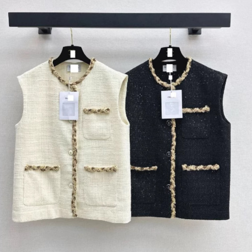 深圳南油25春夏女装百搭单品显瘦高级粗花呢马甲外套