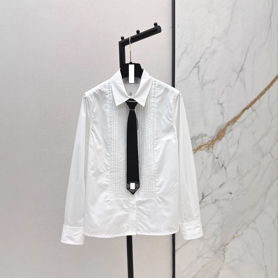 深センNanyou 25春夏高級婦人服小香風ホットダイヤモンドロゴ装飾超人気ネクタイ白シャツ
