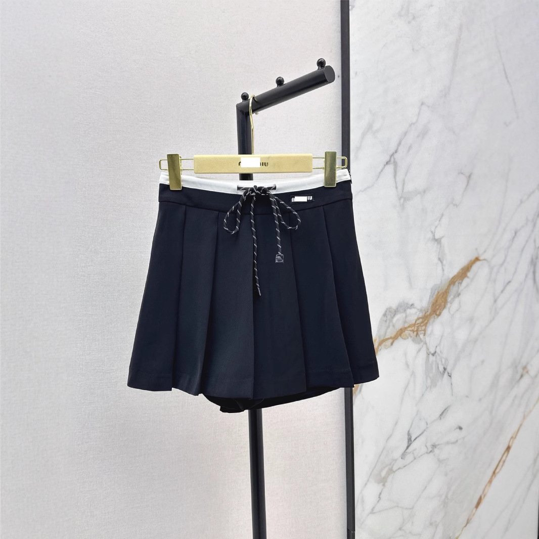 深圳南油25春夏高端女装百搭少女感又甜又辣撞色高腰百褶裤裙