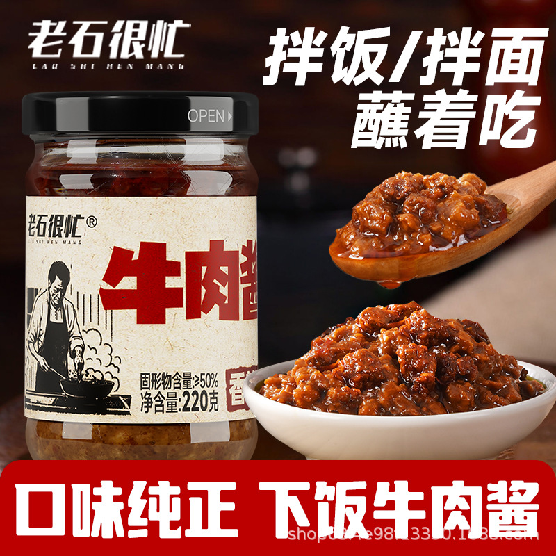 老石很忙牛肉酱220g源头厂家代发五香香辣味拌饭酱厨房调料下饭酱
