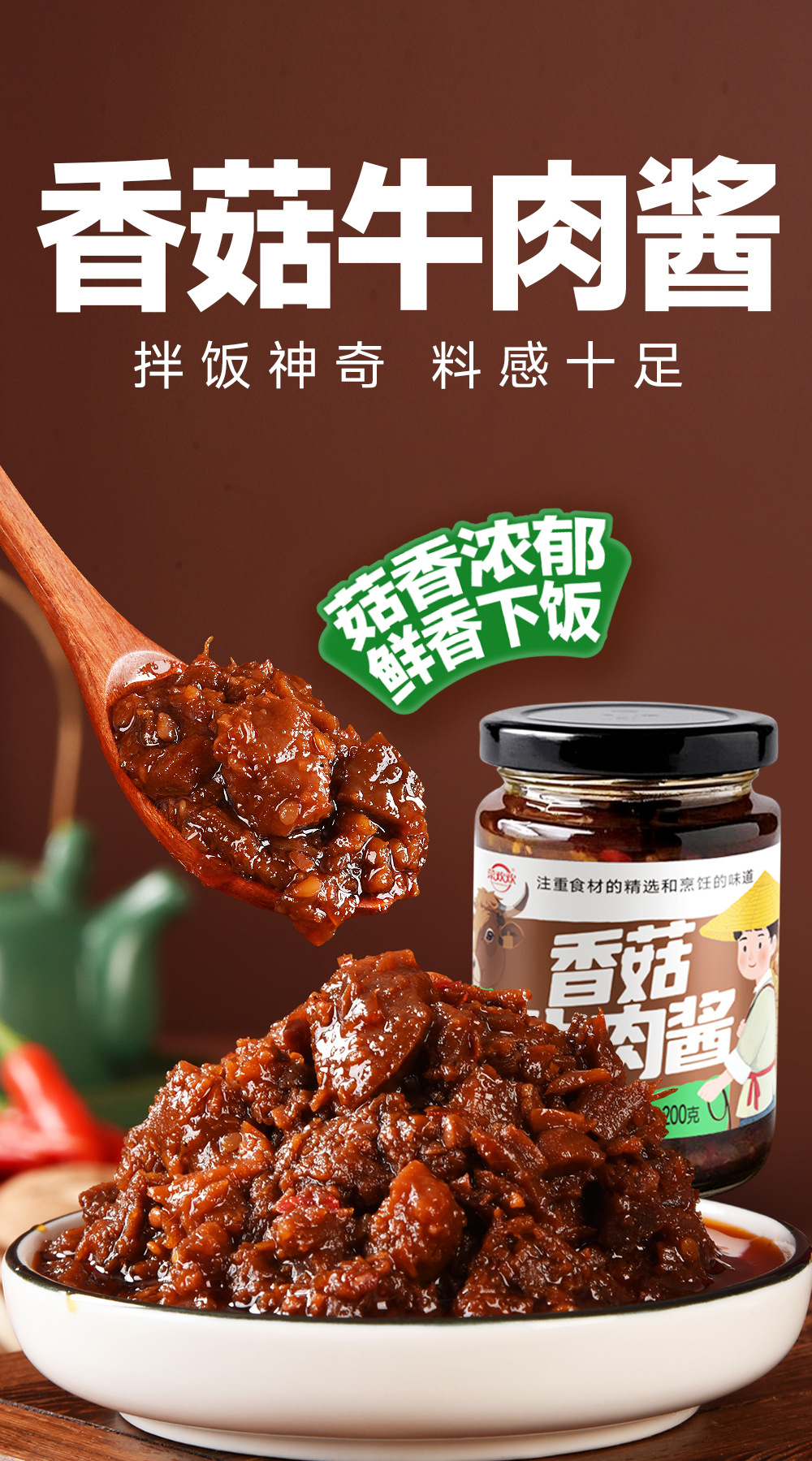 牛肉酱拌饭酱拌面酱开胃神器饭菜香菇酱辣椒酱料瓶装官方旗舰店