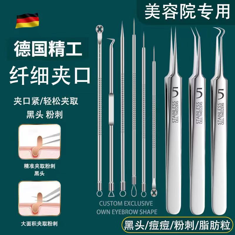 不锈钢超尖精密粉刺针黑头夹挤痘工具美容院专用细胞夹粉刺夹套装