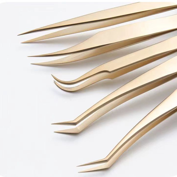 まつげエクステ用ピンセット 高精度 美容室専用ツール 金羽根型クリップ つけまつげ用