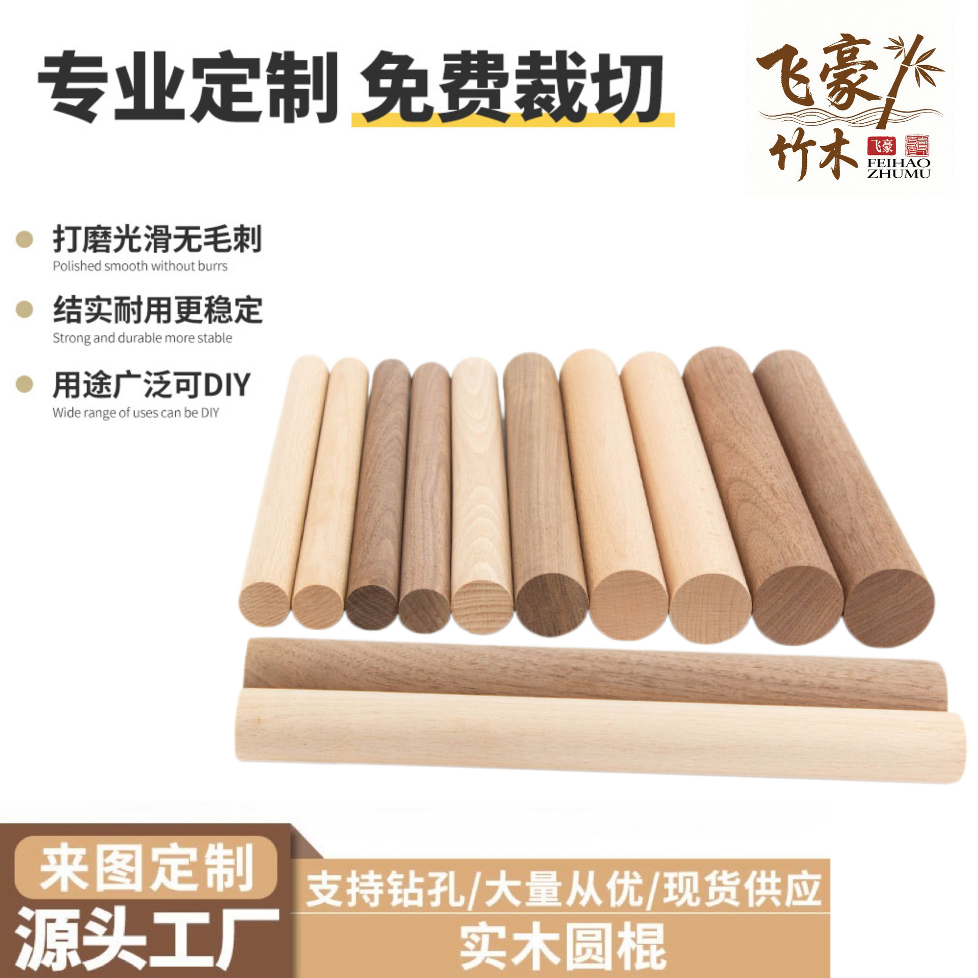 厂家批发榉木圆木棒 DIY木杆木棍圆木条挂毯木杆衣杆小木棍